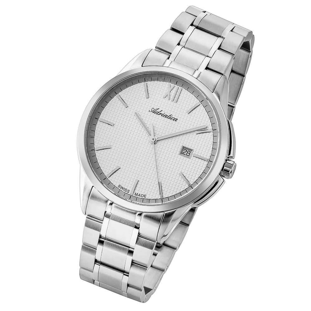 Часы Adriatica A1290.5163Q представляют собой идеальное сочетание элегантности и функциональности, разработанное для современных мужчин. Их стильный циферблат защищен сапфировым стекломСапфировое стеклоПрочный и надёжный материал из кристалла сапфира синтетического происхождения, характеризующийся особой твёрдостью и устойчивостью к царапинам и повреждениям., что придает дополнительную устойчивость к царапинам. Корпус из нержавеющей стали подчеркивает их изысканность и долговечность. Надежный кварцевый механизм с калибром ETA F06 (PreciDrive) гарантирует точность времени, а водозащита WR 50 (5 ATM) обеспечивает защиту от воды в различных условиях. Браслет из нержавеющей стали с застежкой «бабочка»Застёжка "бабочка"Такой вид застёжки дополняется предохранителями, помогающими избежать случайного раскрытия браслета. Обладают изящным исполнением. гармонично дополняет общий дизайн и обеспечивает комфортное ношение на запястье. Часы оснащены функцией отображения даты в окошке в положении 3 часа, что добавляет практичности в повседневной жизни. Люминесцентное покрытиеЛюминесцентное покрытиеПозволяет считывать показания времени в темноте. Производители наносят на стрелки, часовые индексы, безель или поверхность циферблата светонакопительный состав, дающий холодное свечение. на стрелках и метках обеспечивает отличную видимость в темноте.