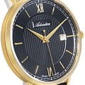 Мужские швейцарские часы Adriatica Pairs A1294.1264Q имеют кварцевый механизм с высокой точностью. Корпус часов изготовлен из нержавеющей стали золотистым PVDPVDУльтратонкое покрытие наносится в технике вакуумного напыления, сочетает в себе нитрид титана особой прочности со слоем золота или оксида хрома. Несёт в себе декоративную или защитную функцию. покрытием. Сапфировое стеклоСапфировое стеклоПрочный и надёжный материал из кристалла сапфира синтетического происхождения, характеризующийся особой твёрдостью и устойчивостью к царапинам и повреждениям. устойчивое к появлению царапин, обладающее высокой прозрачностью, защищает черный циферблат, на котором расположилось окошко даты в районе 3 часа, а метки этих часов в виде штрихов и римских цифр VI и XII. Кожаный черный ремешок со стандартной застежкой обеспечивает комфортное ношение и подчеркивает стильный внешний вид. Надежный кварцевый механизм с калибром RONDA 715 гарантирует точность времени, а водозащита WR 30 (3 ATM) делает эти часы практичным выбором для повседневного использования.
