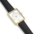 Женские кварцевые часы Amalys из коллекции Hepburn — это элегантный и универсальный аксессуар. Корпус прямоугольной формы размером 23×28 мм выполнен из нержавеющей стали с PVD-покрытиемPVDУльтратонкое покрытие наносится в технике вакуумного напыления, сочетает в себе нитрид титана особой прочности со слоем золота или оксида хрома. Несёт в себе декоративную или защитную функцию. цвета жёлтого золота. Циферблат белого цвета оформлен римскими цифрами и стрелками. Циферблат защищён минеральным стекломМинеральное стеклоМинеральное стекло представляет собой искусственно выращенный минерал кварца. Такое стекло отличается особой устойчивостью к повреждениям и царапинам. Уступает по некоторым качествам сапфировому стеклу.. Часы оснащены чёрным кожаным ремешком на классической пряжке. Водонепроницаемость 30 м позволяет использовать часы в повседневных условиях. Идеальный выбор для тех, кто ценит бельгийское качество и классический дизайн.