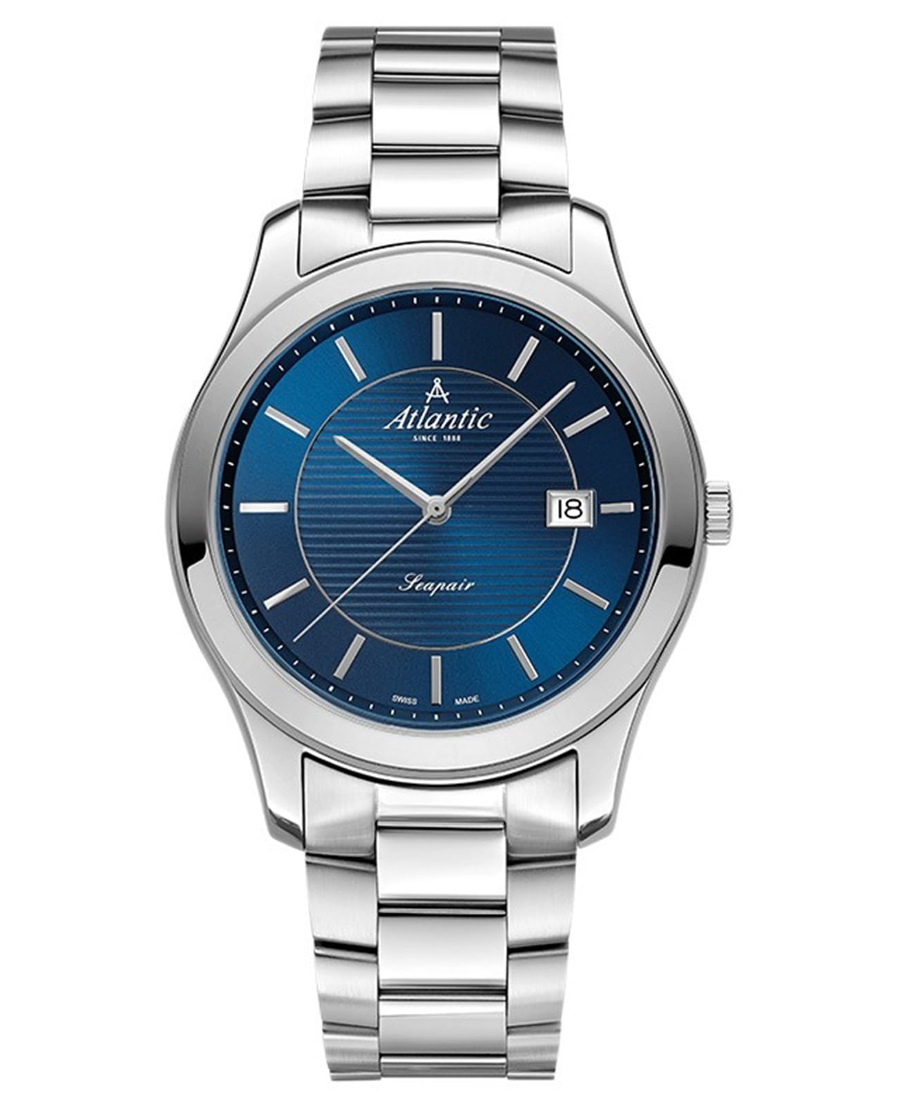 Мужские швейцарские часы Atlantic Seaport 60335.41.51, кварцевый механизм с высокой точностью.  Cапфировое стеклоСапфировое стеклоПрочный и надёжный материал из кристалла сапфира синтетического происхождения, характеризующийся особой твёрдостью и устойчивостью к царапинам и повреждениям. устойчивое к появлению царапин и обладающее высокой прозрачностью. Корпус и браслет часов изготовлены из нержавеющей стали. Окошко даты находится в положении 3 часов. Класс водозащиты: 50 метров, позволит защитить корпус от случайных брызг или капель дождя. Стальной браслет на раскладной застёжкеРаскладная застёжкаТакой тип застёжки используется только на браслетах из металла. Она никогда не раскрывается полностью, происходит разделение на 2 и более частей. Раскладывающая застёжка снизит вероятность потери часов к минимуму..