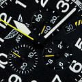 Циферблат оформлен в классическом aviator-стиле: крупные арабские цифры, широкие стрелки и чёткое деление минут позволяют считывать время мгновенно. Стрелки и метки покрыты люминесцентным покрытиемЛюминесцентное покрытиеПозволяет считывать показания времени в темноте. Производители наносят на стрелки, часовые индексы, безель или поверхность циферблата светонакопительный состав, дающий холодное свечение. для отличной читаемости при слабом освещении.