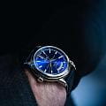 Циферблат с сатинированной отделкой оформлен в духе Art Deco. В верхней части — изогнутое окошко дня недели, в нижней — классический индикатор даты. Крупные арабские цифры, минутная шкала и стрелки типа «ланцет» обеспечивают превосходную читаемость. Для удобства в условиях слабого освещения стрелки и метки покрыты люминесцентным покрытиемЛюминесцентное покрытиеПозволяет считывать показания времени в темноте. Производители наносят на стрелки, часовые индексы, безель или поверхность циферблата светонакопительный состав, дающий холодное свечение..