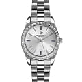 Американские женские часы с минеральным стекломМинеральное стеклоМинеральное стекло представляет собой искусственно выращенный минерал кварца. Такое стекло отличается особой устойчивостью к повреждениям и царапинам. Уступает по некоторым качествам сапфировому стеклу. Beverly Hills Polo Club BP3171C.330 с кварцевым механизмом с высокой точностью. Класс водозащиты: 30 метров, позволит защитить корпус от случайных брызг или капель дождя. БезельБезельВнешний ободок, закрепляющий стекло. В спортивных часах так называется поворотное кольцо с делениями на циферблате, выполняет роль таймера – замеряет отрезки времени на шкале. Неподвижный безель – элемент декора. Однонаправленно вращающийся безель на дайверских часах позволяет фиксировать моменты погружения и выныривания на поверхность. украшен кристаллами. Корпус часов изготовлен из суперметалла. Раскладная застёжкаРаскладная застёжкаТакой тип застёжки используется только на браслетах из металла. Она никогда не раскрывается полностью, происходит разделение на 2 и более частей. Раскладывающая застёжка снизит вероятность потери часов к минимуму..