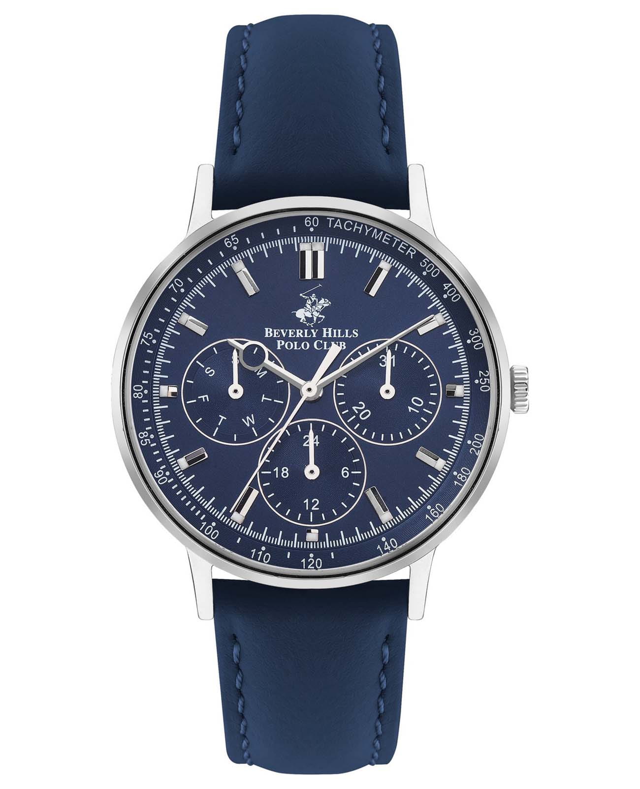 Американские женские часы с минеральным стекломМинеральное стеклоМинеральное стекло представляет собой искусственно выращенный минерал кварца. Такое стекло отличается особой устойчивостью к повреждениям и царапинам. Уступает по некоторым качествам сапфировому стеклу. Beverly Hills Polo Club BP3391C.399, кварцевый механизм с высокой точностью. Корпус часов изготовлен из нержавеющей стали. На циферблате расположены три дополнительных индикатора и шкала тахиметрТахиметрРазмеченная шкала, располагается на ободке или безеле часов. Тахиметр позволяет рассчитать скорость на определённом участке пути, расстояние измеряется в километрах или милях.. Класс водозащиты: 50 метров, позволит защитить корпус от случайных брызг или капель дождя. Кожаный ремешок с классической застежкой.