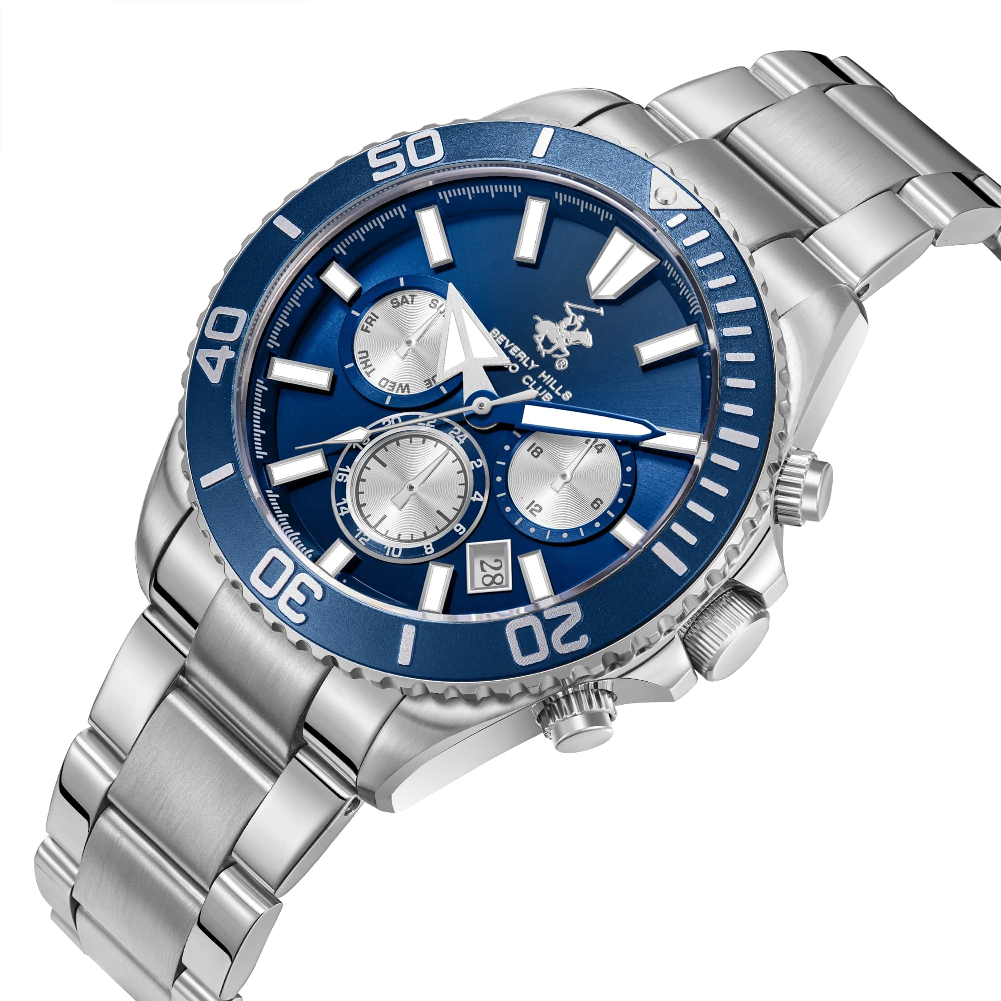 Часы Beverly Hills Polo Club BP3721X.390 — это гармоничное сочетание силы, стиля и современных технологий. Выполненные из высококачественной нержавеющей стали, минеральное стеклоМинеральное стеклоМинеральное стекло представляет собой искусственно выращенный минерал кварца. Такое стекло отличается особой устойчивостью к повреждениям и царапинам. Уступает по некоторым качествам сапфировому стеклу., защищающее циферблат, надёжно оберегает его от царапин, сохраняя яркий блеск. БезельБезельВнешний ободок, закрепляющий стекло. В спортивных часах так называется поворотное кольцо с делениями на циферблате, выполняет роль таймера – замеряет отрезки времени на шкале. Неподвижный безель – элемент декора. Однонаправленно вращающийся безель на дайверских часах позволяет фиксировать моменты погружения и выныривания на поверхность. с PVD-покрытиемPVDУльтратонкое покрытие наносится в технике вакуумного напыления, сочетает в себе нитрид титана особой прочности со слоем золота или оксида хрома. Несёт в себе декоративную или защитную функцию.. С уровнем водозащиты до 100 метров, эти часы готовы сопровождать вас в любых водных приключениях: будь то плавание, ныряние или активные занятия спортом. Стальной браслет на раскладной застёжкеРаскладная застёжкаТакой тип застёжки используется только на браслетах из металла. Она никогда не раскрывается полностью, происходит разделение на 2 и более частей. Раскладывающая застёжка снизит вероятность потери часов к минимуму.. На циферблате отображается не только текущее время, но и такие полезные функции, как дата, день недели, 24-часовой формат.Стрелки с люминесцентным покрытиемЛюминесцентное покрытиеПозволяет считывать показания времени в темноте. Производители наносят на стрелки, часовые индексы, безель или поверхность циферблата светонакопительный состав, дающий холодное свечение. придают удобство в использовании в темное время суток. Эта модель — истинное воплощение философии Beverly Hills Polo Club: сочетание высоких стандартов качества и неподражаемого стиля, создающее аксессуар, который станет вашим верным компаньоном в повседневной жизни.