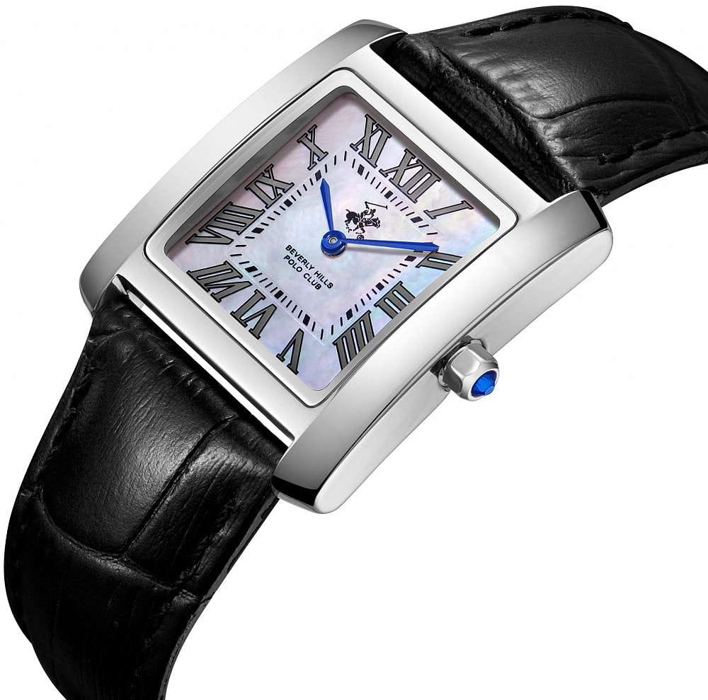 Женские кварцевые часы Beverly Hills Polo Club — это практичный и классический аксессуар. Корпус квадратной формы размером 27×27 мм выполнен из нержавеющей стали. Циферблат перламутрового цвета оформлен римскими цифрами и стрелками. Циферблат защищён минеральным стекломМинеральное стеклоМинеральное стекло представляет собой искусственно выращенный минерал кварца. Такое стекло отличается особой устойчивостью к повреждениям и царапинам. Уступает по некоторым качествам сапфировому стеклу.. Гранёная заводная головка придаёт изделию дополнительный стиль. Часы оснащены кожаным ремешком на застёжке «бабочка» с кнопкамиЗастёжка "бабочка"Такой вид застёжки дополняется предохранителями, помогающими избежать случайного раскрытия браслета. Обладают изящным исполнением. . Водонепроницаемость 50 м позволяет использовать часы в повседневных условиях, включая мытьё рук и дождь, но не рекомендуется плавать. Идеальный выбор для тех, кто ценит американское качество и универсальный дизайн.