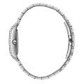 Механизм часов кварцевый, питание от батарейки, что обеспечивает точность хода и минимальное обслуживание. Циферблат защищен минеральным стекломМинеральное стеклоМинеральное стекло представляет собой искусственно выращенный минерал кварца. Такое стекло отличается особой устойчивостью к повреждениям и царапинам. Уступает по некоторым качествам сапфировому стеклу. с сапфировым покрытием, которое устойчиво к появлению царапин и сохраняет чистоту взгляда на протяжении длительного времени. Стальной браслет на застёжке-бабочке с кнопкамиЗастёжка "бабочка"Такой вид застёжки дополняется предохранителями, помогающими избежать случайного раскрытия браслета. Обладают изящным исполнением. . Часы обладают водозащитой до 30 метров, позволит защитить корпус от случайных брызг или капель дождя. Цирконы придают часам неповторимый шарм и изысканность.
