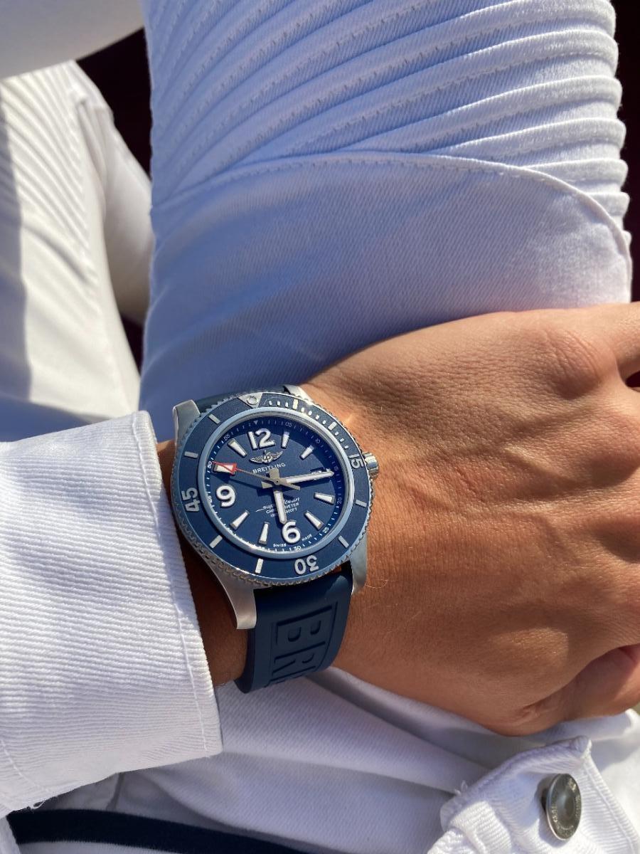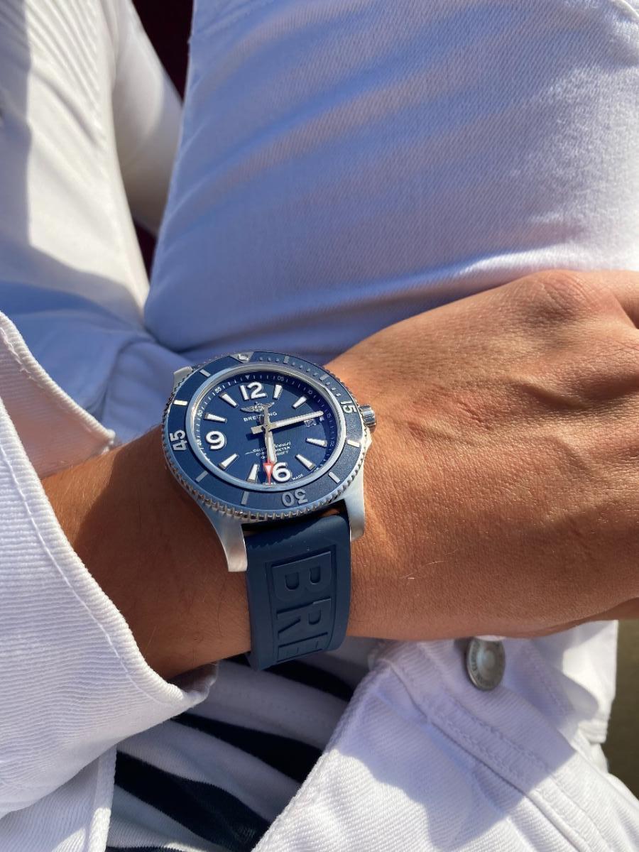 Современная, спортивная и яркая модель Superocean Automatic 42 совмещает в себе прекрасные технические характеристики с современным дизайном – она изящно выглядит на любом запястье. Эти часы не боятся ничего: в них можно погружаться под воду, заниматься серфингом или делать заплывы!