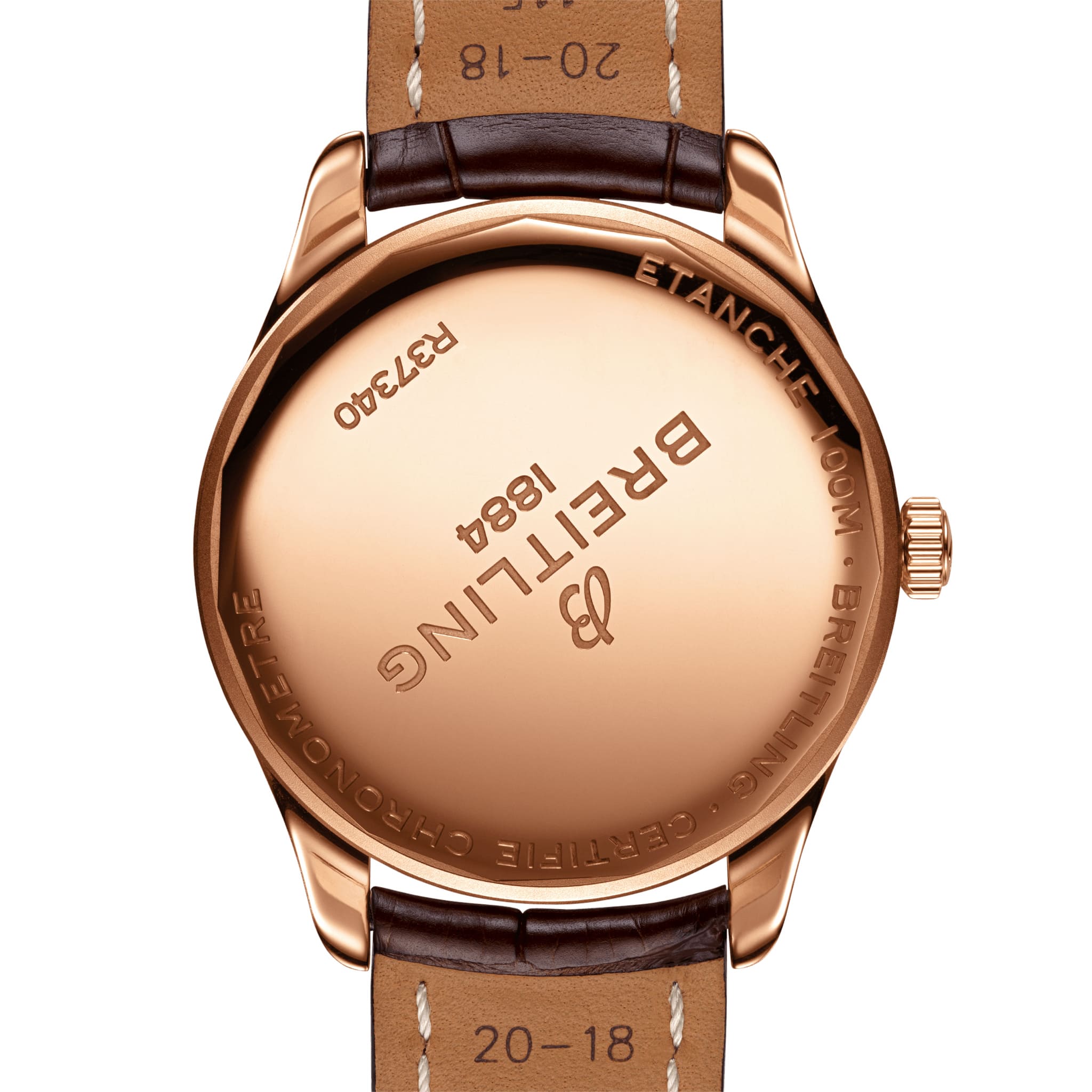 Модель предлагается в комплекте с браслетом или ремешком из телячьей кожи нубук или кожи аллигатора с классической или раскладной застежкой. Внутри корпуса спрятан калибр Breitling Caliber 37, сертифицированный Швейцарским институтом официального тестирования хронометров (COSC).