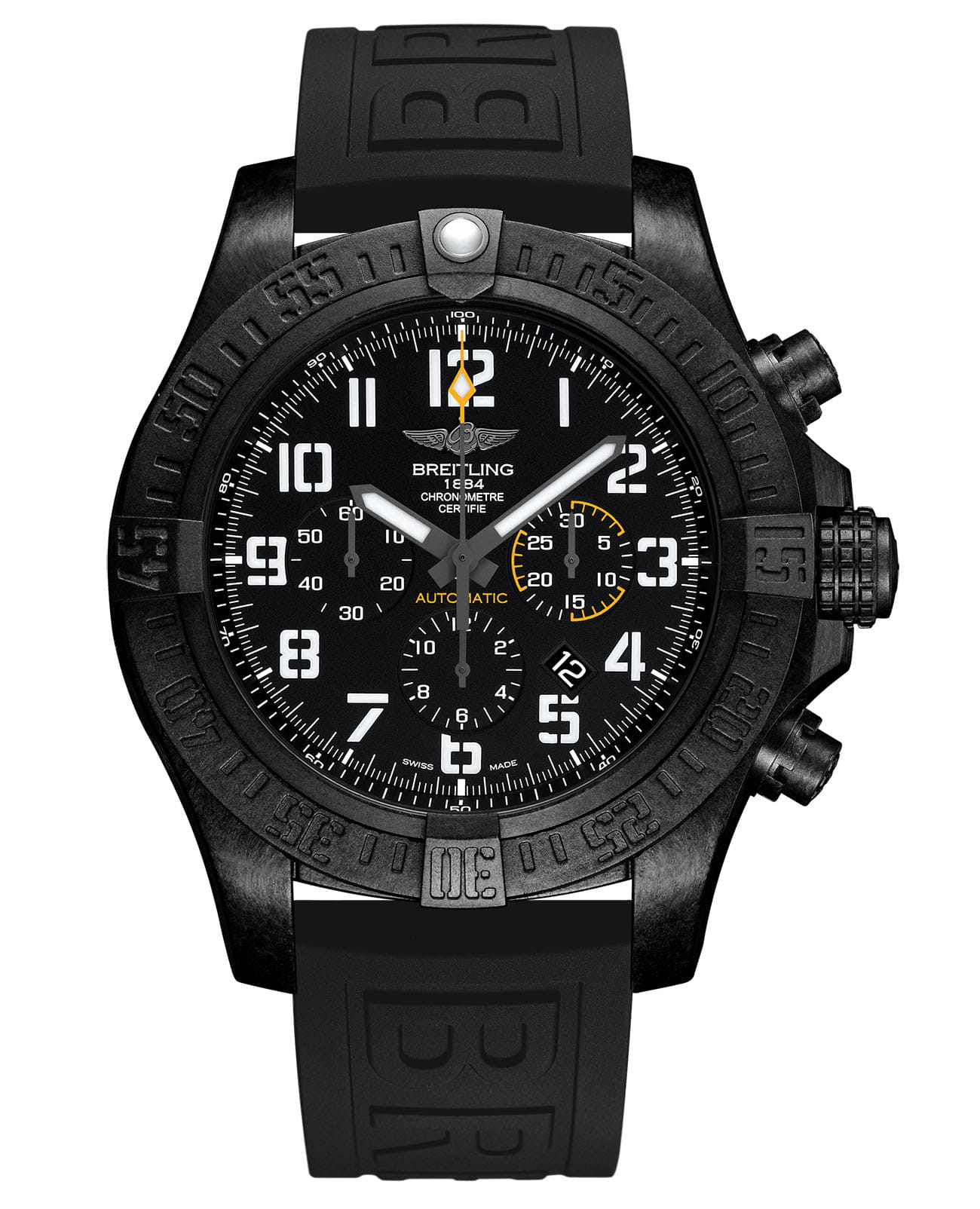 Мужские швейцарские часы Breitling Avenger Hurricane 12H XB0170E41B1S1, механический мануфактурный механизм Breitling Caliber 01 с высокой точностью. Выпуклое сапфировое стекло устойчивое к появлению царапин, обладающее высокой прозрачностью и антибликовым покрытием с обеих сторон. Корпус черного цвета, изготовлен из Breitlight®, прочного сверхлегкого полимера, вес которого в 3,3 раза меньше, чем у титана, и в 5,8 раза меньше, чем у нержавеющей стали.