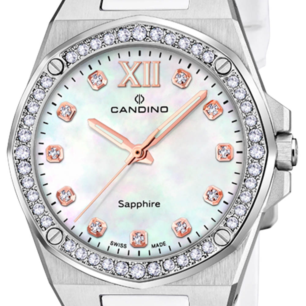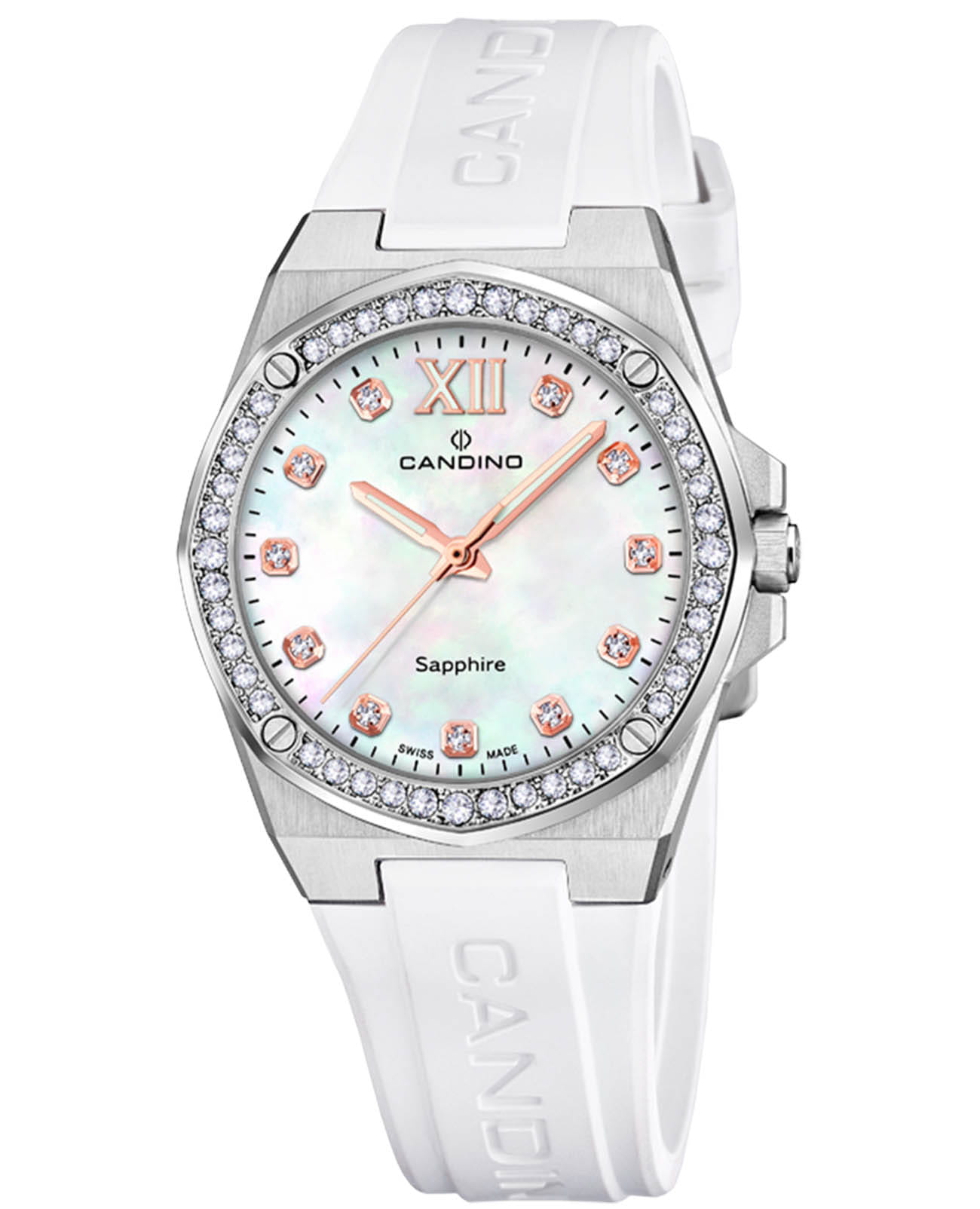 Женские швейцарские часы Candino Elegance C4772/1 — это воплощение швейцарского мастерства и элегантности. Оснащённые высокоточным кварцевым механизмом, они обеспечивают безупречное измерение времени. Сапфировое стеклоСапфировое стеклоПрочный и надёжный материал из кристалла сапфира синтетического происхождения, характеризующийся особой твёрдостью и устойчивостью к царапинам и повреждениям. защищает циферблат от мелких царапин и повреждений, сохраняя его кристальную чистоту.
