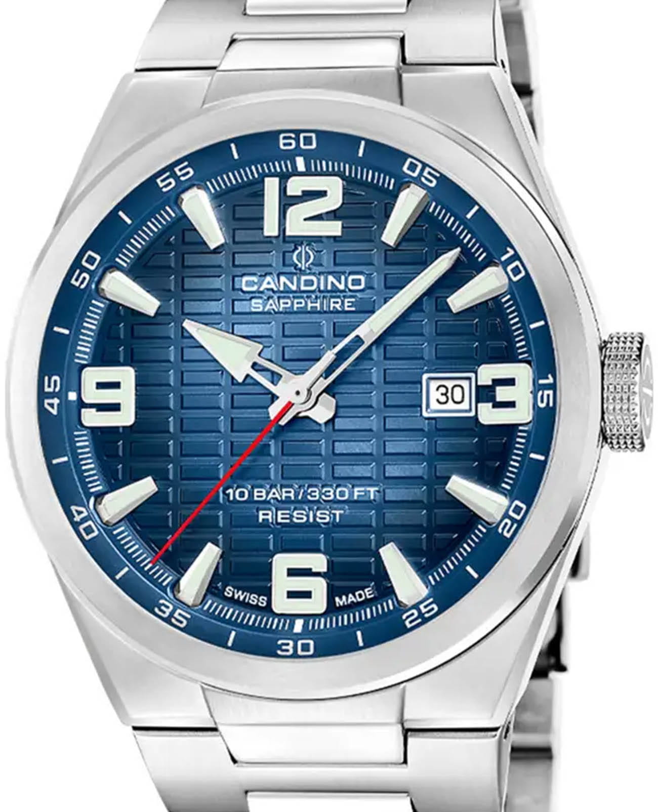Мужские кварцевые часы Candino из коллекции Series 1947 — это сочетание классического дизайна, надёжности и швейцарского качества. Корпус диаметром 43 мм выполнен из нержавеющей стали. Циферблат синего цвета оформлен индексами и стрелками с люминесцентным покрытиемЛюминесцентное покрытиеПозволяет считывать показания времени в темноте. Производители наносят на стрелки, часовые индексы, безель или поверхность циферблата светонакопительный состав, дающий холодное свечение.. Окошко даты расположено в положении 3 часов. Циферблат защищён сапфировым стекломСапфировое стеклоПрочный и надёжный материал из кристалла сапфира синтетического происхождения, характеризующийся особой твёрдостью и устойчивостью к царапинам и повреждениям., устойчивым к царапинам. Механизм — кварцевый, обеспечивает высокую точность хода. Часы оснащены стальным браслетом с раскладной застёжкойРаскладная застёжкаТакой тип застёжки используется только на браслетах из металла. Она никогда не раскрывается полностью, происходит разделение на 2 и более частей. Раскладывающая застёжка снизит вероятность потери часов к минимуму.. Водонепроницаемость 100 м позволяет использовать часы для плавания и повседневного ношения. Гарантия — 2 года. Идеальный выбор для тех, кто ценит стиль, точность и надёжность.