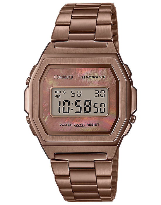 Аксессуар с фирменным для Casio 8-угольным корпусом будет гармонично смотреться как с деловым пиджаком, так и с повседневной водолазкой. Оригинальности добавляет переливающийся цифровой дисплей. Корпус и браслет сделаны из нержавеющей стали 316L с IP-покрытиемIP-покрытиеМетод ионного напыления. Демонстрирует повышенную устойчивость к истиранию, окислению и химическим веществам. Под воздействием высокого давления и температуры около 1500°C молекулы металла надёжно соединяются с частицами корпуса часов., выполняющим декоративную и защитную функцию. Надёжное минеральное стекло. Срок работы батарейки - 3 года. Наличие будильника, секундомера, календаря. Светодиодная подсветкаСветодиодная подсветкаСветодиодная или LED-подсветка обеспечивает появление яркого холодного свечения за счёт LED-элементов - маленьких лампочек. Они потребляют минимальное количество энергии, чаще всего можно встретить 1 светодиод, в нижней части циферблата. дисплея. Габариты: 38 x 39,6 x 7,3 мм.