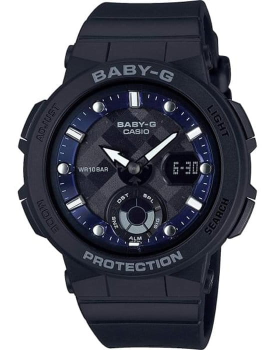 Женские японские часы Casio Baby-G BGA-250-1A из коллекции Baby-G в тёмном цвете дополнят образ на летнюю вечеринку.