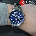 Мужские наручные часы Casio Edifice надежные и практичные. Кварцевый японский механизм Miyota. Отображение времени в различных часовых поясах с обозначением 29 основных городов в этих зонах и универсальное время. (в режиме «текущего времени» отображается индикатором на «12 часах»). Будильник (устанавливается и отображается индикатором на «6 часах»).  Стрелки и индексы с светонакопительным нанесением. Корпус и браслет выполнены из высококачественной стали с антикоррозийными свойствами. Минеральное стекло устойчиво к появлению царапин. Циферблат - рельефный, стилизованный под картографическое изображение земного шара. Водонепроницаемость (10 Бар).