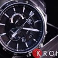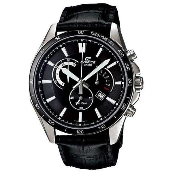 Мужские классические наручные часы Casio Edifice надежные и практичные. Кварцевый японский механизм Miyota. Точность хода не хуже -10 +15 сек./в месяц. Часы оснащены функцией хронографа. Циферблат черног цвета с контрастными индексами.