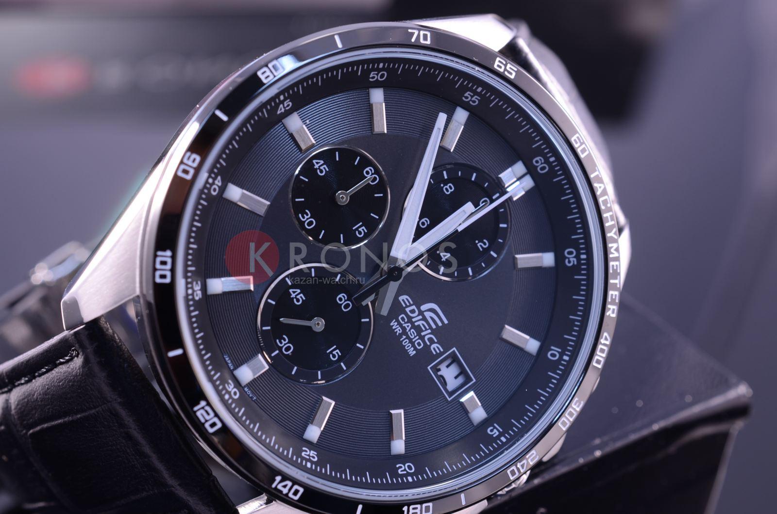 Стильный, мужские наручные часы Casio Edifice надежные и практичные. Кварцевый японский механизм Miyota. Точность хода не хуже -10 +15 сек./в месяц. Часы оснащены функцией хронографа. Циферблат черного цвета с контрастными, позолоченными индексами.Стрелки и индексы с светонакопительным нанесением. Корпус выполнен из нержавеющей стали. Ремешок из натуральной кожи, черного цвета, с удобной застежкой. Минеральное стекло устойчиво к появлению царапин. Водонепроницаемость 100М. В часах можно плавать. Степень водонепроницаемости не является величиной, эквивалентной функциональной рабочей глубине.