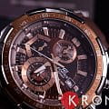 Кварцевый японский механизм Miyota. Точность хода не хуже -10 +15 сек./в месяц. Часы оснащены функцией хронографа, с точностью 1/10с и временем измерения 1ч. Циферблат коричневого цвета с контрастными, позолоченными элементами дизайна. Флюорисцентное напыление на стрелках и дисплее часов позволяет отчетливее видеть каждую цифру. Корпус выполнен из нержавеющей стали с частичным IP покрытием. Ремешок из натуральной кожи коричневого цвета. Минеральное стекло устойчиво к появлению царапин. Водонепроницаемость 100М. В часах можно плавать. Степень водонепроницаемости не является величиной, эквивалентной функциональной рабочей глубине.