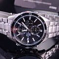 Стильный, мужские наручные часы Casio Edifice надежные и практичные. Кварцевый японский механизм Miyota. Точность хода не хуже -10 +15 сек./в месяц.Часы оснащены функцией хронографа, с точностью 1/10с и временем измерения 1ч. Циферблат черного цвета с контрастными элементами дизайна. Стрелки и индексы с светонакопительным нанесением.