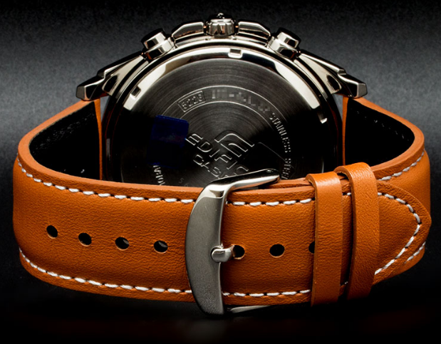 Кварцевый японский механизм Miyota. Точность хода не хуже -10 +15 сек./в месяц. Часы оснащены функцией хронографа. Циферблат бежевого цвета с контрастными позолоченными элементами дизайна. Стрелки и индексы с светонакопительным нанесением. Корпус выполнен из высококачественной стали с антикоррозийными свойствами. Ремешок из натуральной кожи, коричневого цвета. Минеральное стекло устойчиво к появлению царапин. Водонепроницаемость 100М. В часах можно плавать.