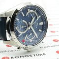 Для модели было выбрано синее цветовое решение, циферблат с необычным расположением счётчиков хронографаХронографФункция позволяет измерять отрезки времени с особой точностью: часы, минуты, секунды. Верным признаком хронографа является наличие на циферблате 3 дополнительных окошек-счётчиков. и крупной индикацией времени выглядит действительно стильно. Наручные часы обеспечиваются питанием благодаря технологии , что весьма удобно и экологично. Точностью хода кварцевого механизма составляет +/- 15 секунд в месяц. Стекло из сапфира. Люминесцентная подсветкаЛюминесцентное покрытиеПозволяет считывать показания времени в темноте. Производители наносят на стрелки, часовые индексы, безель или поверхность циферблата светонакопительный состав, дающий холодное свечение.. Водозащита 10 бар. Ремешок из натуральной кожи. Секундомер, календарь. Габариты: 49,5 x 44,2 x 11,6 мм.
