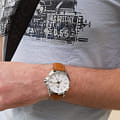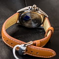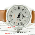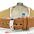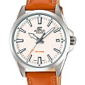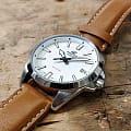 Светлый циферблат дополнен крупными часовыми метками и стрелками контрастного оттенка. Спортивного стиля добавляет секундная стрелка с оранжевым наконечником. Стильно смотрится лаконичный коричневый ремешок из натуральной кожи. Надёжный корпус из нержавеющей стали 316L защищает кварцевый механизм от ударов. Заводная головка с защитой. Люминесцентная подсветкаЛюминесцентное покрытиеПозволяет считывать показания времени в темноте. Производители наносят на стрелки, часовые индексы, безель или поверхность циферблата светонакопительный состав, дающий холодное свечение.. Водостойкость до 10 бар. Минеральное стеклоМинеральное стеклоМинеральное стекло представляет собой искусственно выращенный минерал кварца. Такое стекло отличается особой устойчивостью к повреждениям и царапинам. Уступает по некоторым качествам сапфировому стеклу.. Отображение даты. Габариты: 48 x 42 x 10,9 мм.
