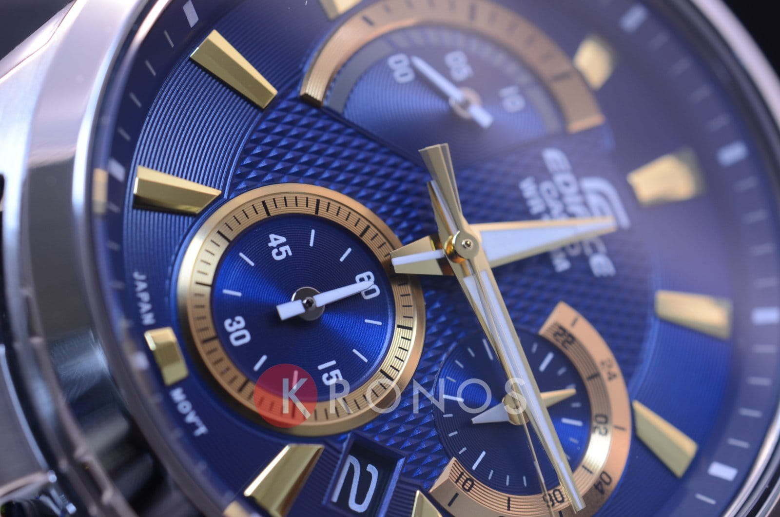 Японские мужские часы из коллекции Edifice, представляющие собой аксессуар с автомобильным характером.