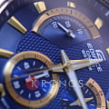 Кварцевый хронографХронографФункция позволяет измерять отрезки времени с особой точностью: часы, минуты, секунды. Верным признаком хронографа является наличие на циферблате 3 дополнительных окошек-счётчиков. понравится любителям активного образа жизни, динамичный дизайн модели станет отображением вашей жизненной позиции и стремления к победам. Синий циферблат с узором и золотистыми метками и стрелками дополнен миниатюрными счётчиками, отличающимися оригинальным исполнением и расположением. Минеральное стекло устойчиво к царапинам. Срок службы батарейки - 3 года. Люминесцентная подсветкаЛюминесцентное покрытиеПозволяет считывать показания времени в темноте. Производители наносят на стрелки, часовые индексы, безель или поверхность циферблата светонакопительный состав, дающий холодное свечение.. Водонепроницаемость до 10 бар, чему дополнительно способствует закручивающаяся крышка. Секундомер, отображение даты. Габариты: 51 x 43,8 x 12,4 мм.