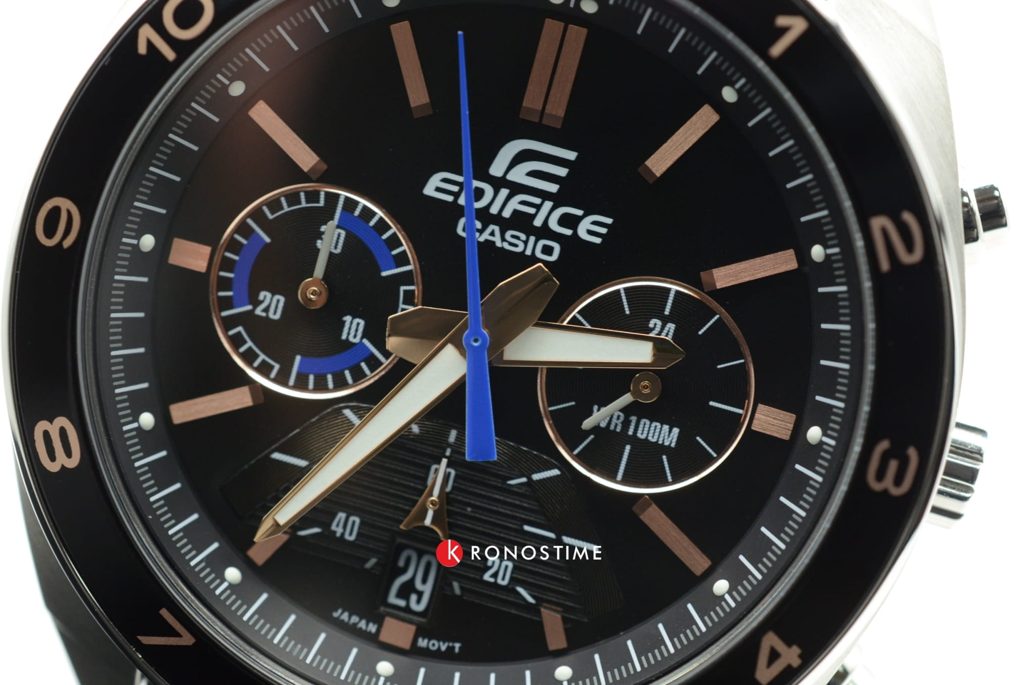 Модель из коллекции Edifice представляет собой стильный спортивный хронографХронографФункция позволяет измерять отрезки времени с особой точностью: часы, минуты, секунды. Верным признаком хронографа является наличие на циферблате 3 дополнительных окошек-счётчиков., который станет идеальным дополнением к деловому, спортивному, повседневному стилю.
