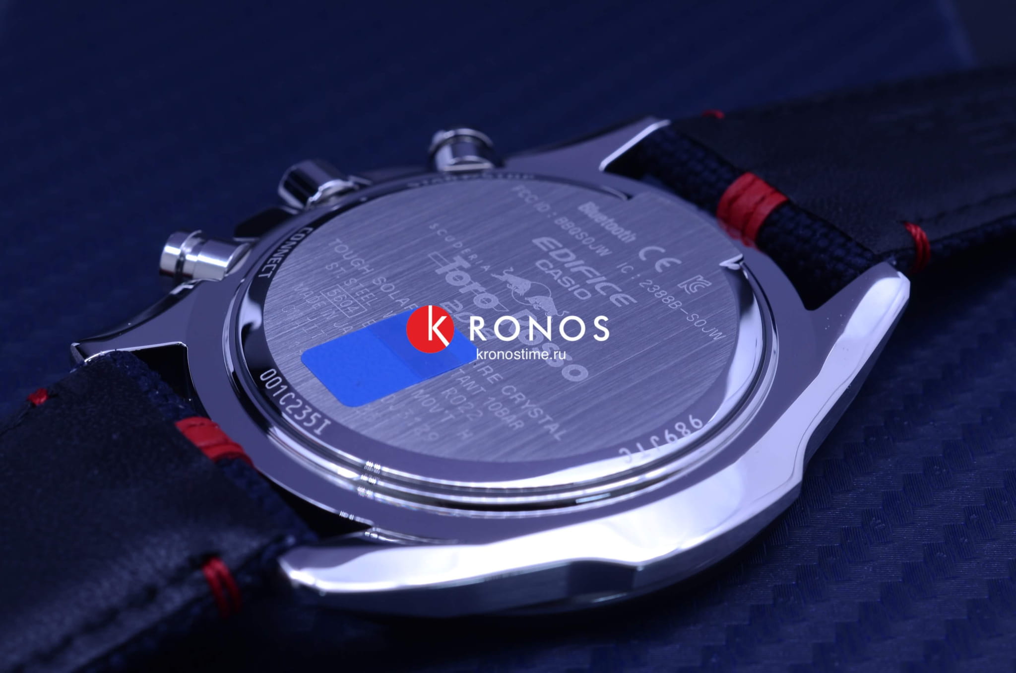 Для оформления премиальной модели были выбраны фирменные оттенки Scuderia Torro Rosso - синий, серебристый, красный. Оригинальным элементом стал тканевый ремешок со вставками из кевлара. Инженеры Casio оснастили часы тонким японским кварцевым механизмом, что позволило добиться появлению корпуса всего в 8,9 мм. Модель получает питание от энергии любого источника света, реализуя технологию . Индикатор состояния элемента питания подскажет, когда часам будет необходима подзарядка. Режим экономии энергии. Карбоновый безельБезельВнешний ободок, закрепляющий стекло. В спортивных часах так называется поворотное кольцо с делениями на циферблате, выполняет роль таймера – замеряет отрезки времени на шкале. Неподвижный безель – элемент декора. Однонаправленно вращающийся безель на дайверских часах позволяет фиксировать моменты погружения и выныривания на поверхность. и циферблат. Водостойкость 10 бар. Ударопрочный корпусУдаропрочный корпусМеханизм заключён в корпус, выполненный из современных материалов, устойчивых к ударам, механическим повреждениям и падению с высоты: инновационный пластик, карбон, нержавеющая сталь, титан. из стали 316L. Сапфировое стекло с антибликовым покрытием. Функции: BluetoothBluetoothСовременная технология, позволяющая синхронизировать часы с телефоном и переносить данные. Часы с Bluetooth расширяют возможности вашего смартфона и делают его использование ещё более удобным. нового поколения, секундомер, память на 200 результатов, поиск телефона, мировое времяМировое время Полезное часовое усложнение, отображающее время в основных городах и известных областях по всему миру, оно связано с часовыми поясами, удобно для путешественников и бизнесменов. , будильник, календарь. Люминесцентная подсветка NeobriteПодсветка NeobriteИспользование светонакопительных составов на основе сульфида цинка или алюмината стронция, яркий свет можно наблюдать на протяжении 6-10 часов после «зарядки» часов около источника света.. Габариты: 49,9 x 45,6 x 8,9 мм.