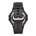 Внешний вид часов с чёрным полимерным ремешком остался прежним, изменения коснулись лишь материалов и дополнительных функциональных особенностей. Внимание притягивает необычный циферблат с тремя функциональными окошками над основным дисплеем. Тёмная расцветка разбавлена элементами голубого, красного и белого цвета. Кварцевый механизм японского производства получает питание от батарейки, срок которой рассчитан на 5 лет. Ударопрочный корпусУдаропрочный корпусМеханизм заключён в корпус, выполненный из современных материалов, устойчивых к ударам, механическим повреждениям и падению с высоты: инновационный пластик, карбон, нержавеющая сталь, титан. из полимерного пластика, устойчивый к большим нагрузкам. Минеральное стеклоМинеральное стеклоМинеральное стекло представляет собой искусственно выращенный минерал кварца. Такое стекло отличается особой устойчивостью к повреждениям и царапинам. Уступает по некоторым качествам сапфировому стеклу.. Водостойкость 200 метров. Электролюминесцентная подсветкаЭлектролюминесцентная подсветкаЭлектролюминесцентная панель устанавливается под ЖК-экраном часов, при нажатии кнопки электричество преобразуется в свет за счёт подачи напряжения на атомы фосфора, такой тип подсветки позволяет освещать весь циферблат. циферблата. СекундомерСекундомерСекундоме́р — прибор, способный измерять интервалы времени с точностью до долей секунды., хронографХронографФункция позволяет измерять отрезки времени с особой точностью: часы, минуты, секунды. Верным признаком хронографа является наличие на циферблате 3 дополнительных окошек-счётчиков., таймерТаймерОтсчитывает секунды в обратном направлении в заданном интервале времени. обратного отсчёта с автоповтором, мировое времяМировое время Полезное часовое усложнение, отображающее время в основных городах и известных областях по всему миру, оно связано с часовыми поясами, удобно для путешественников и бизнесменов. , 5 будильниковБудильникБуди́льник — часы, в заданный момент времени подающие звуковой, световой и/или в редких случаях другой сигнал., автоматический календарь до 2099 года. Габариты: 51,4 x 46,8 x 15,5 мм.