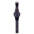 Наручные часы в тёмной расцветке с синими элементами станут главной деталью вашего образа. Внимание привлекает текстура корпуса, имитирующая кожу грубой выделки. Модель отличается внушительным внешним видом, многоуровневым циферблатом, оригинальными элементами циферблата. Японский кварцевый механизм находится внутри пластикового противоударного корпусаУдаропрочный корпусМеханизм заключён в корпус, выполненный из современных материалов, устойчивых к ударам, механическим повреждениям и падению с высоты: инновационный пластик, карбон, нержавеющая сталь, титан., выдерживающего высокие нагрузки. Батарейка рассчитана на 2 года. Закаленное минеральное стекло. Полимерный ремешок. Светодиодная подсветкаСветодиодная подсветкаСветодиодная или LED-подсветка обеспечивает появление яркого холодного свечения за счёт LED-элементов - маленьких лампочек. Они потребляют минимальное количество энергии, чаще всего можно встретить 1 светодиод, в нижней части циферблата. циферблата. Водонепроницаемость 20 бар. Возможности: хронографХронографФункция позволяет измерять отрезки времени с особой точностью: часы, минуты, секунды. Верным признаком хронографа является наличие на циферблате 3 дополнительных окошек-счётчиков., автоматический календарь до 2099 года, секундомер, расчёт средней скорости пройденной дистанции, таймер, мировое времяМировое время Полезное часовое усложнение, отображающее время в основных городах и известных областях по всему миру, оно связано с часовыми поясами, удобно для путешественников и бизнесменов. , будильник. Габариты: 55 x 51,2 x 16,9 мм.