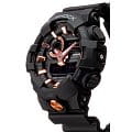 Стильный аксессуар чёрного цвета имеет привлекательные акценты в цвете розового золота, что смягчает его брутальный вид. Часы с крупными стрелками и метками обеспечивают идеальную читаемость показателей времени, кнопка подсветки для удобства вынесена в нижнюю часть ударопрочного корпусаУдаропрочный корпусМеханизм заключён в корпус, выполненный из современных материалов, устойчивых к ударам, механическим повреждениям и падению с высоты: инновационный пластик, карбон, нержавеющая сталь, титан.. Он, как и ремешок, выполнен из полимерного материала, выдерживающим удары и падения. Японский кварцевый механизм получает питание от батарейки, отличающейся повышенным сроком службы до 5 лет. Закаленное минеральное стекло. Яркая светодиодная подсветкаСветодиодная подсветкаСветодиодная или LED-подсветка обеспечивает появление яркого холодного свечения за счёт LED-элементов - маленьких лампочек. Они потребляют минимальное количество энергии, чаще всего можно встретить 1 светодиод, в нижней части циферблата.. Водозащита 200 метров. Функция перемещения стрелок для быстрого доступа к данным малых счётчиков. Таймер обратного отсчёта, UTCUTCВсемирное кординационное время, не имеющее привязки к географическому положению Гринвича, основывается на атомном отсчёте времени. Регулировка времени осуществляется более точно, чем устаревшее GMT.