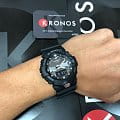 Часы в лаконичном исполнении с продуманными динамичными элементами стильно смотрятся благодаря сочетанию чёрного цвета и хромового циферблата. Модель получила уменьшенный ударопрочный корпусУдаропрочный корпусМеханизм заключён в корпус, выполненный из современных материалов, устойчивых к ударам, механическим повреждениям и падению с высоты: инновационный пластик, карбон, нержавеющая сталь, титан. из полимерного материала, если сравнивать с аксессуарами серии GA-700. Кнопка светодиодной подсветкиСветодиодная подсветкаСветодиодная или LED-подсветка обеспечивает появление яркого холодного свечения за счёт LED-элементов - маленьких лампочек. Они потребляют минимальное количество энергии, чаще всего можно встретить 1 светодиод, в нижней части циферблата. вынесена в нижнюю часть, обеспечивая удобное пользование. Японский кварцевый механизм с точностью хода +/- 15 секунд в месяц. Батарейка рассчитана на 3 года службы. Включение и отключение звука кнопок. Ремешок из высококачественного пластика. Закаленное минеральное стекло. Стрелки с люминесцентным покрытиемЛюминесцентное покрытиеПозволяет считывать показания времени в темноте. Производители наносят на стрелки, часовые индексы, безель или поверхность циферблата светонакопительный состав, дающий холодное свечение.. Водонепроницаемость до 200 метров. Автоматический календарь до 2099 года, таймер, хронографХронографФункция позволяет измерять отрезки времени с особой точностью: часы, минуты, секунды. Верным признаком хронографа является наличие на циферблате 3 дополнительных окошек-счётчиков., 5 будильников, секундомер, мировое времяМировое время Полезное часовое усложнение, отображающее время в основных городах и известных областях по всему миру, оно связано с часовыми поясами, удобно для путешественников и бизнесменов. . Габариты: 54,1 x 48,6 x 15,5 мм.