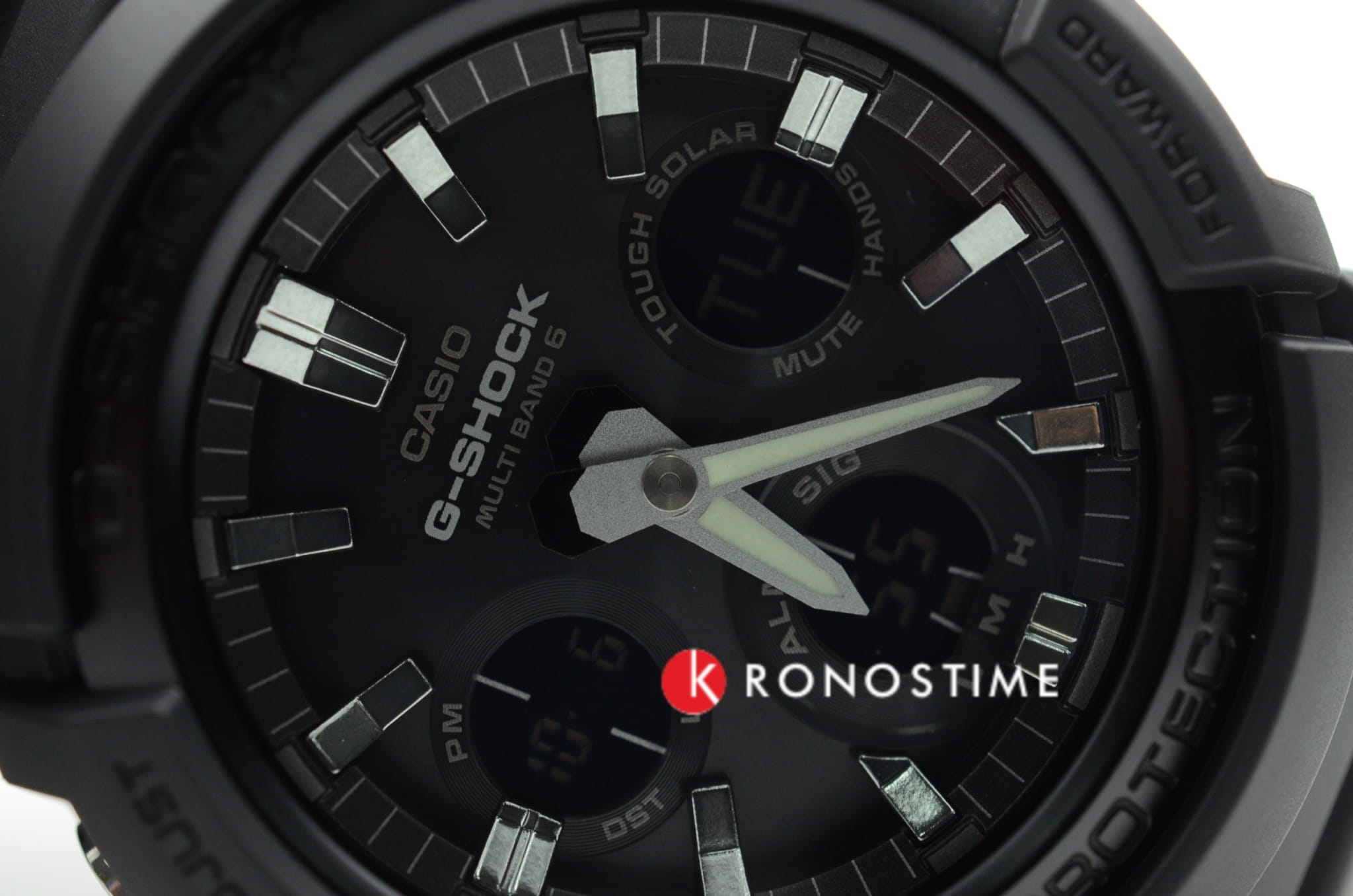 Чёрный циферблат дополнен тёмно-серебристыми стрелками и часовыми метками, расположены счётчики хронографаХронографФункция позволяет измерять отрезки времени с особой точностью: часы, минуты, секунды. Верным признаком хронографа является наличие на циферблате 3 дополнительных окошек-счётчиков.. Гибкий ремешок из полимерного материала не вызывает дискомфорта при ношении и не нуждается в особом уходе. Это наручные часы на солнечной батарее, реализуется технология . Функционал: приём сигнала от 6 радиовышек, автоматический календарь, мировое времяМировое время Полезное часовое усложнение, отображающее время в основных городах и известных областях по всему миру, оно связано с часовыми поясами, удобно для путешественников и бизнесменов. , секундомер, таймер, будильник. Минеральное стекло. Ударопрочный полимерный корпусУдаропрочный корпусМеханизм заключён в корпус, выполненный из современных материалов, устойчивых к ударам, механическим повреждениям и падению с высоты: инновационный пластик, карбон, нержавеющая сталь, титан.. Индикатор уровня заряда батарейки. Люминесцентная подсветкаЛюминесцентное покрытиеПозволяет считывать показания времени в темноте. Производители наносят на стрелки, часовые индексы, безель или поверхность циферблата светонакопительный состав, дающий холодное свечение. стрелок, светодиодная подсветкаСветодиодная подсветкаСветодиодная или LED-подсветка обеспечивает появление яркого холодного свечения за счёт LED-элементов - маленьких лампочек. Они потребляют минимальное количество энергии, чаще всего можно встретить 1 светодиод, в нижней части циферблата. дисплея. Габариты: 55,1 x 52,5 x 16,7 мм.