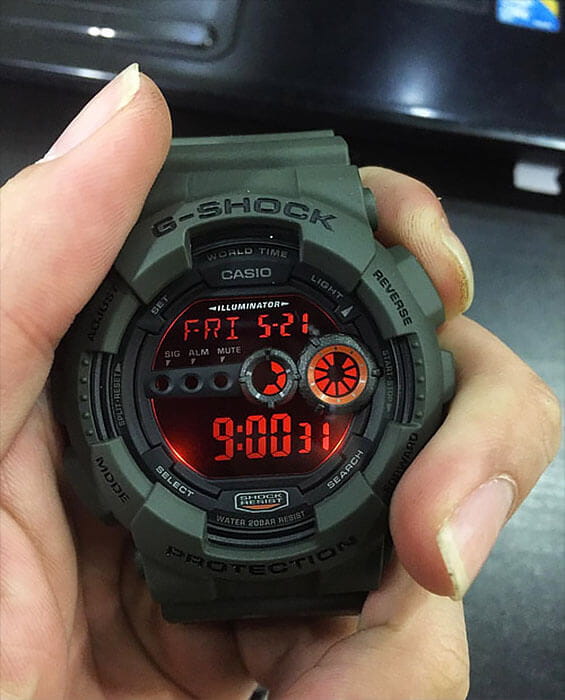 5 LCD-дисплеев различного размера выстроены в ряд, что придаёт модели эксклюзивный трёхмерный образ. Аксессуар цвета хаки точно станет ключевым элементом вашего повседневного стиля. Уникальной особенностью стала светодиодная подсветкаСветодиодная подсветкаСветодиодная или LED-подсветка обеспечивает появление яркого холодного свечения за счёт LED-элементов - маленьких лампочек. Они потребляют минимальное количество энергии, чаще всего можно встретить 1 светодиод, в нижней части циферблата., для повышения яркости которой инженеры Casio используют специальный люминесцентныйЛюминесцентное покрытиеПозволяет считывать показания времени в темноте. Производители наносят на стрелки, часовые индексы, безель или поверхность циферблата светонакопительный состав, дающий холодное свечение. круг. Кварцевый японский механизм работает от батарейки, рассчитанной на 7 лет эксплуатации. Противоударный корпусУдаропрочный корпусМеханизм заключён в корпус, выполненный из современных материалов, устойчивых к ударам, механическим повреждениям и падению с высоты: инновационный пластик, карбон, нержавеющая сталь, титан. и браслет из полимерного пластика. 12/24-часовое отображение времени. Минеральное стекло. Возможность включения отключения звука кнопок. Световая индикация сигнала для будильника, по окончанию работы таймера или секундомера. Мировое времяМировое время Полезное часовое усложнение, отображающее время в основных городах и известных областях по всему миру, оно связано с часовыми поясами, удобно для путешественников и бизнесменов. , автоматический календарь, хронографХронографФункция позволяет измерять отрезки времени с особой точностью: часы, минуты, секунды. Верным признаком хронографа является наличие на циферблате 3 дополнительных окошек-счётчиков.. Габариты: 55 x 51,2 x 17,4 мм.