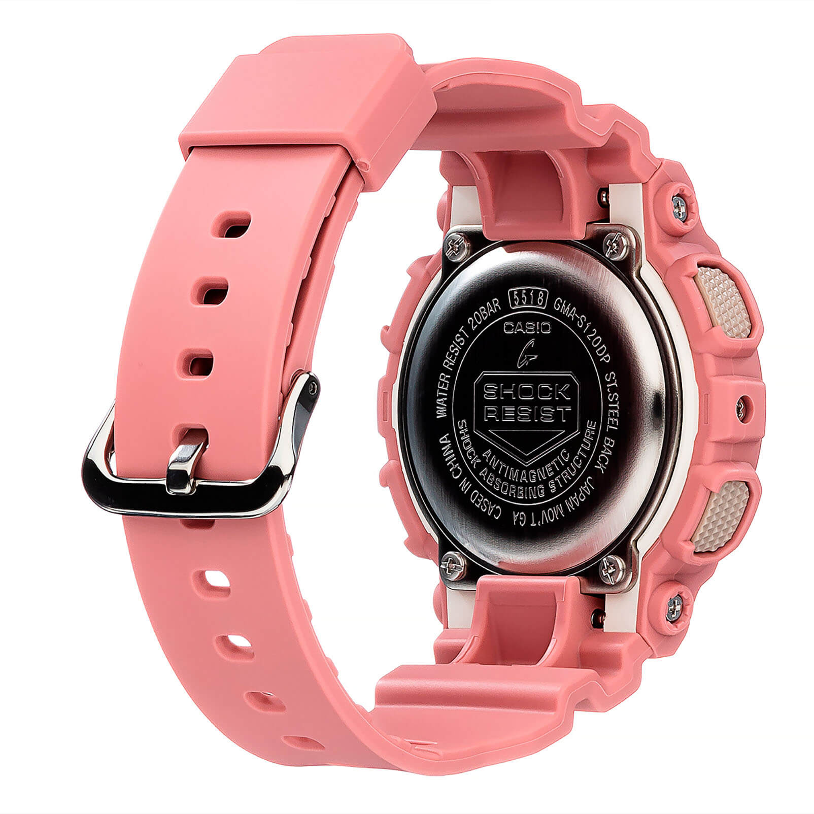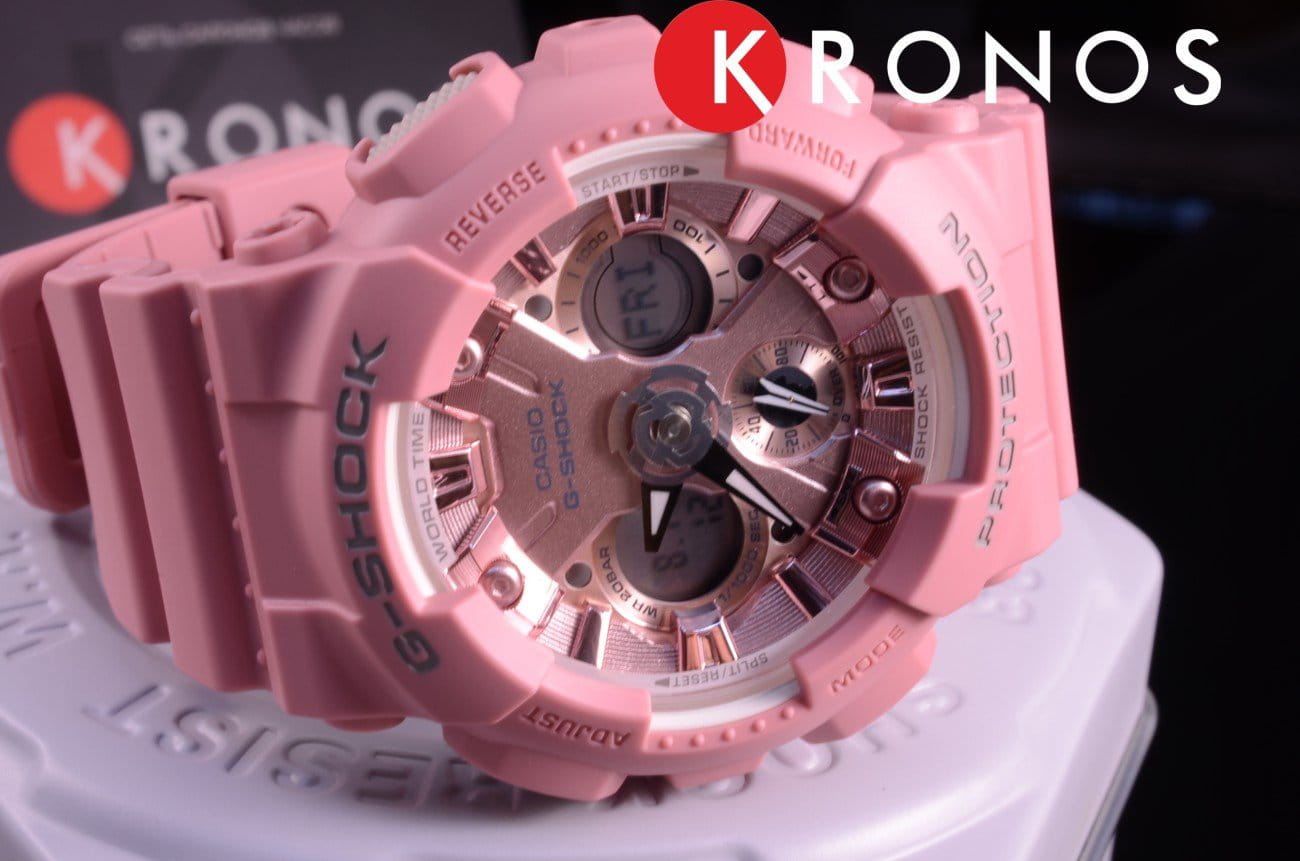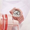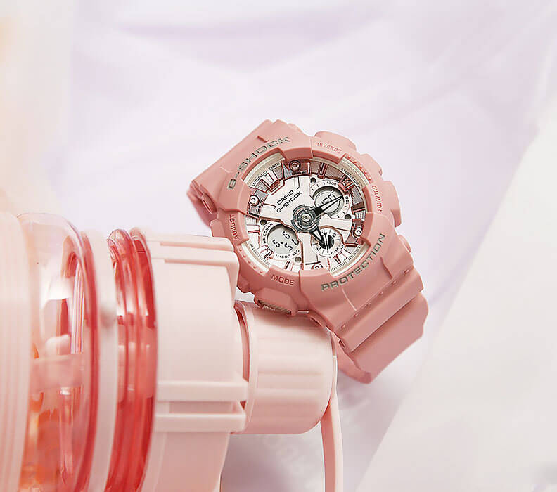 Японские женские часы GMA-S120DP-4AER из коллекции G-Shock представлены в спортивном облачении, но их пастельно-ягодный оттенок позволяет продемонстрировать изысканную натуру.