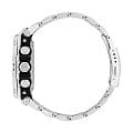 Наручные часы отражают динамичный характер. Необычным элементом стал счётчик у отметки 9 часов, имитирующий турбину. Он помогает контролировать уровень заряда батарейки, чем больше цвета вы видите, тем выше необходимость зарядить модель. Питание осуществляется за счёт солнечной батареи - технология . Также стоит обратить внимание на противоударный корпусУдаропрочный корпусМеханизм заключён в корпус, выполненный из современных материалов, устойчивых к ударам, механическим повреждениям и падению с высоты: инновационный пластик, карбон, нержавеющая сталь, титан. из пластика и стали 316L, такое усиленное сочетание позволяет добиться максимальной прочности. Надёжный стальной браслет. Минеральное стекло. СветодиоднаяСветодиодная подсветкаСветодиодная или LED-подсветка обеспечивает появление яркого холодного свечения за счёт LED-элементов - маленьких лампочек. Они потребляют минимальное количество энергии, чаще всего можно встретить 1 светодиод, в нижней части циферблата. и люминесцентная подсветкаЛюминесцентное покрытиеПозволяет считывать показания времени в темноте. Производители наносят на стрелки, часовые индексы, безель или поверхность циферблата светонакопительный состав, дающий холодное свечение.. Завинчивающаяся заводная головка. Возможности: BluetoothBluetoothСовременная технология, позволяющая синхронизировать часы с телефоном и переносить данные. Часы с Bluetooth расширяют возможности вашего смартфона и делают его использование ещё более удобным., ежедневный будильник, секундомер, хронографХронографФункция позволяет измерять отрезки времени с особой точностью: часы, минуты, секунды. Верным признаком хронографа является наличие на циферблате 3 дополнительных окошек-счётчиков., мировое времяМировое время Полезное часовое усложнение, отображающее время в основных городах и известных областях по всему миру, оно связано с часовыми поясами, удобно для путешественников и бизнесменов. , автоматический календарь, таймер. Габариты: 58,1 x 53,8 x 14,1 мм.