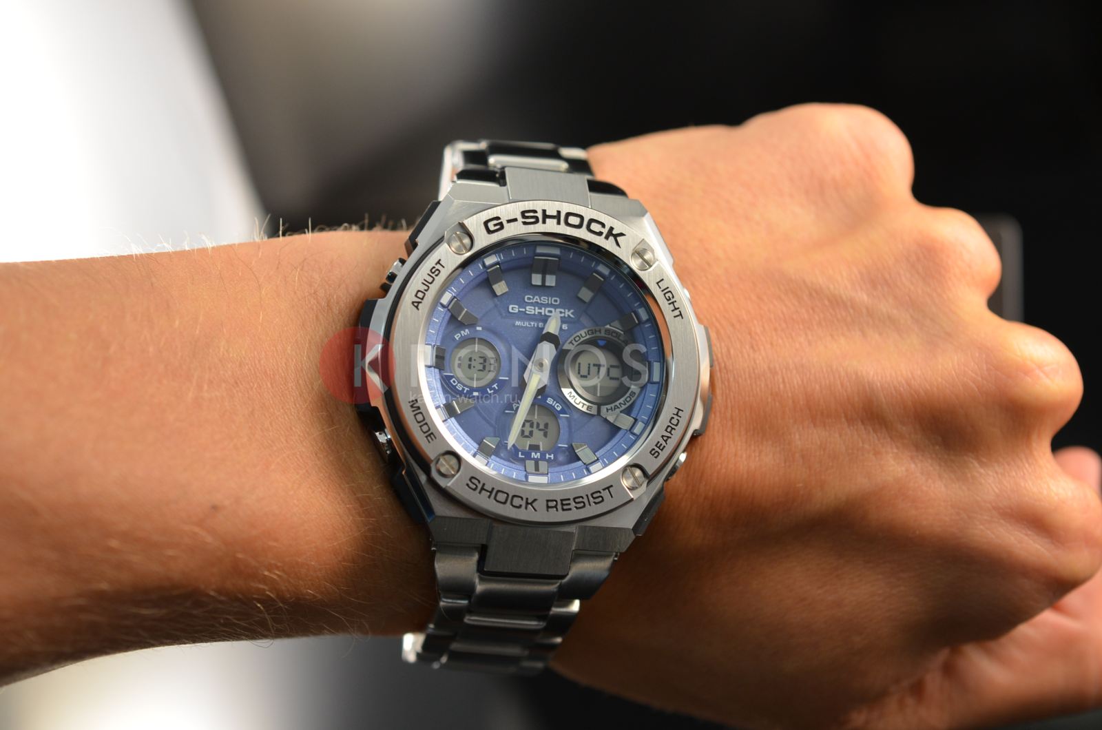 Несмотря на то, что модель оснащена кварцевым японским механизмом, внешний облик она переняла у механических наручных часов. Циферблат с крупной индикацией времени отличается практичностью, это идеальный вариант для работы, учёбы, повседневной прогулки. Противоударный корпусУдаропрочный корпусМеханизм заключён в корпус, выполненный из современных материалов, устойчивых к ударам, механическим повреждениям и падению с высоты: инновационный пластик, карбон, нержавеющая сталь, титан. и браслет сделаны из нержавеющей стали 316L, отличающейся долговечностью и устойчивостью к нагрузкам. Часы получают питание от солнечной батареи, реализуется технология . Индикатор уровня заряда батареи. Светодиодная подсветкаСветодиодная подсветкаСветодиодная или LED-подсветка обеспечивает появление яркого холодного свечения за счёт LED-элементов - маленьких лампочек. Они потребляют минимальное количество энергии, чаще всего можно встретить 1 светодиод, в нижней части циферблата. циферблата, люминесцентныеЛюминесцентное покрытиеПозволяет считывать показания времени в темноте. Производители наносят на стрелки, часовые индексы, безель или поверхность циферблата светонакопительный состав, дающий холодное свечение. стрелки. Функция перемещения стрелок для удобной читаемости показателей малых счётчиков. Минеральное стекло. UTCUTCВсемирное кординационное время, не имеющее привязки к географическому положению Гринвича, основывается на атомном отсчёте времени. Регулировка времени осуществляется более точно, чем устаревшее GMT.