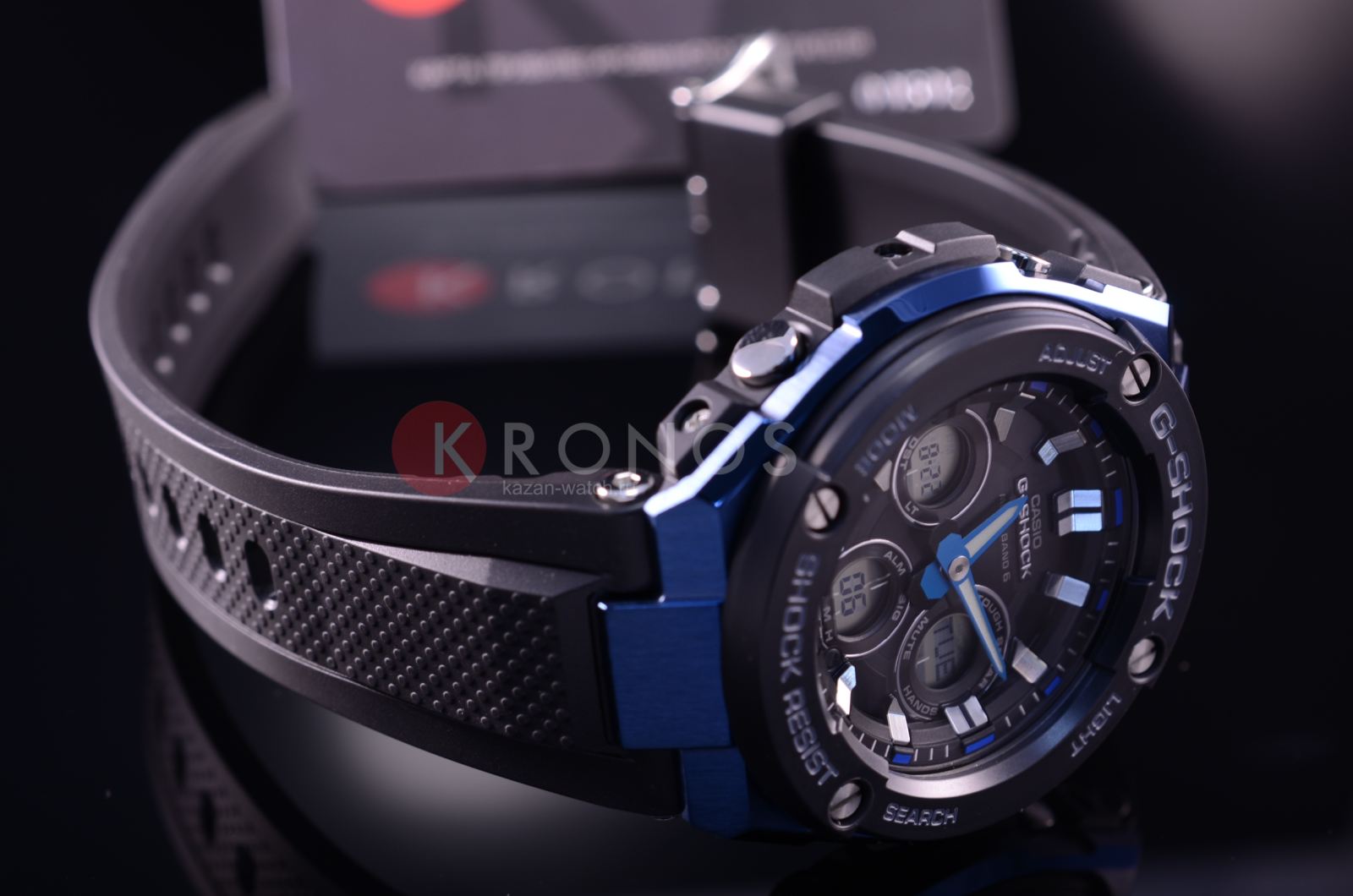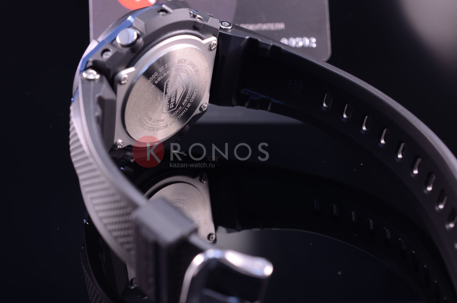 Аксессуар линейки G-Steel отлично смотрится на широком мужском запястье, массивный тёмный циферблат с крупными деталями станет превосходным дополнением для повседневного образа. Это часы на солнечной батарее с технологией , включённая функция сохранения энергии увеличивает время работы аккумулятора без подзарядки до 18 месяцев. Ударопрочный корпусУдаропрочный корпусМеханизм заключён в корпус, выполненный из современных материалов, устойчивых к ударам, механическим повреждениям и падению с высоты: инновационный пластик, карбон, нержавеющая сталь, титан. отличается необычной двухслойной конструкцией, амортизационная полимерная прокладка располагается между пластами из нержавеющей стали 316L. Это обеспечивает появление максимальной устойчивости к ударам и повреждениям. Светодиодная подсветкаСветодиодная подсветкаСветодиодная или LED-подсветка обеспечивает появление яркого холодного свечения за счёт LED-элементов - маленьких лампочек. Они потребляют минимальное количество энергии, чаще всего можно встретить 1 светодиод, в нижней части циферблата. циферблата, стрелки с люминесцентным покрытиемЛюминесцентное покрытиеПозволяет считывать показания времени в темноте. Производители наносят на стрелки, часовые индексы, безель или поверхность циферблата светонакопительный состав, дающий холодное свечение.. Прочный каучуковый ремешок. Минеральное стекло. Водостойкость 20 бар. Частичный IP-финишIP-покрытиеМетод ионного напыления. Демонстрирует повышенную устойчивость к истиранию, окислению и химическим веществам. Под воздействием высокого давления и температуры около 1500°C молекулы металла надёжно соединяются с частицами корпуса часов. корпуса. Функции: автоматический календарь, будильник, хронографХронографФункция позволяет измерять отрезки времени с особой точностью: часы, минуты, секунды. Верным признаком хронографа является наличие на циферблате 3 дополнительных окошек-счётчиков., секундомер, мировое времяМировое время Полезное часовое усложнение, отображающее время в основных городах и известных областях по всему миру, оно связано с часовыми поясами, удобно для путешественников и бизнесменов. , таймер обратного отсчёта, UTCUTCВсемирное кординационное время, не имеющее привязки к географическому положению Гринвича, основывается на атомном отсчёте времени. Регулировка времени осуществляется более точно, чем устаревшее GMT.