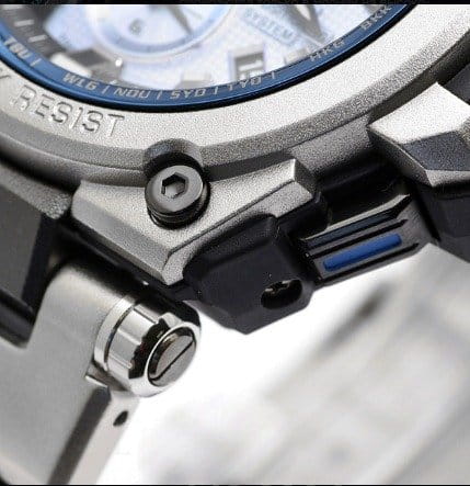 Технология Global Time Sync или GPS синхронизация считается у маркетологов основной изюминкой MTG-G1000. Но у модели имеется еще и уникальный корпус, со структурой “Metal Twisted”. По задумке инженеров, часовой модуль защищается цельным металлом, связанным с пластиком, что способствует наличию ударопрочных превосходных свойств.