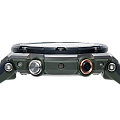 Наручные часы выпущены в брутальном, слегка агрессивном дизайне. Они оформлены в чёрном цвете, ярким элементом стал оранжевый счётчик на метке 9 часов, имитирующий турбину двигателя самолёта. Окошко предназначено для контроля уровня заряда батарейки, чем больше цвета видно, тем выше необходимость поставить часы на подзарядку. Модель серии G-Steel оснащена японским кварцевым механизмом, получаемым энергию для работы от источников света. Так реализуется технология . Аксессуар наделён противоударным корпусомУдаропрочный корпусМеханизм заключён в корпус, выполненный из современных материалов, устойчивых к ударам, механическим повреждениям и падению с высоты: инновационный пластик, карбон, нержавеющая сталь, титан. из полимера и стали 316L, что позволяет усилить конструкцию. На стрелки нанесено люминесцентное покрытиеЛюминесцентное покрытиеПозволяет считывать показания времени в темноте. Производители наносят на стрелки, часовые индексы, безель или поверхность циферблата светонакопительный состав, дающий холодное свечение., аналоговый циферблат подсвечивается светодиодомСветодиодная подсветкаСветодиодная или LED-подсветка обеспечивает появление яркого холодного свечения за счёт LED-элементов - маленьких лампочек. Они потребляют минимальное количество энергии, чаще всего можно встретить 1 светодиод, в нижней части циферблата.. Синхронизация со смартфоном BluetoothBluetoothСовременная технология, позволяющая синхронизировать часы с телефоном и переносить данные. Часы с Bluetooth расширяют возможности вашего смартфона и делают его использование ещё более удобным. позволяет устанавливать точное время, настраивать параметры будильника, мирового времениМировое время Полезное часовое усложнение, отображающее время в основных городах и известных областях по всему миру, оно связано с часовыми поясами, удобно для путешественников и бизнесменов. . Функции: ежедневный будильник, секундомер, хронографХронографФункция позволяет измерять отрезки времени с особой точностью: часы, минуты, секунды. Верным признаком хронографа является наличие на циферблате 3 дополнительных окошек-счётчиков., таймер, вечный календарьВечный календарьКлассическое часовое усложнение, представляющее собой календарь, рассчитанный на несколько лет вперёд (стандартно – до 2099 года). Определяет текущую дату, день недели, месяц.. Габариты: 58,1мм x 53,8мм x 14,1ммp>