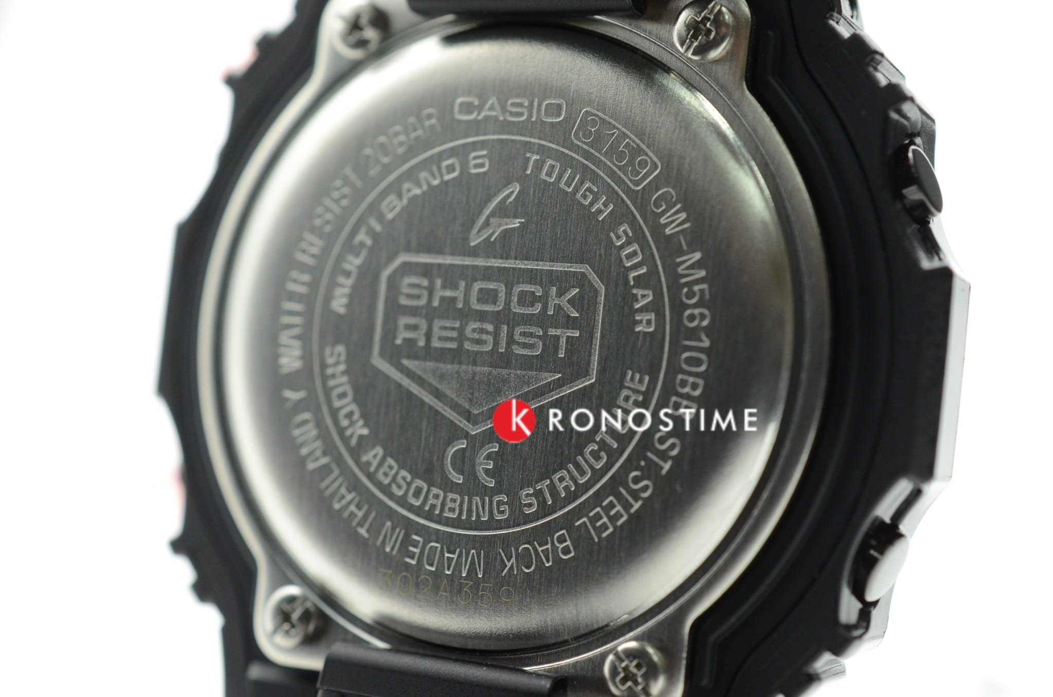 Вновь представлен тот самый 8-угольный противоударный корпусУдаропрочный корпусМеханизм заключён в корпус, выполненный из современных материалов, устойчивых к ударам, механическим повреждениям и падению с высоты: инновационный пластик, карбон, нержавеющая сталь, титан., ставший легендой. Часы в глянцевом чёрном исполнении выдерживают удары и падение с высоты, японский кварцевый механизм надёжно защищён от вибрации. Здесь реализуется технология питания от солнечного света , специальный индикатор позволяет следить за уровнем зарядки батареи. Минеральное стекло отличается устойчивостью к возникновению царапин. Электролюминесцентная подсветкаЭлектролюминесцентная подсветкаЭлектролюминесцентная панель устанавливается под ЖК-экраном часов, при нажатии кнопки электричество преобразуется в свет за счёт подачи напряжения на атомы фосфора, такой тип подсветки позволяет освещать весь циферблат. циферблата. Автоматическая корректировка времени по радиосигналу. Водонепроницаемость до 20 бар. Функции: хронографХронографФункция позволяет измерять отрезки времени с особой точностью: часы, минуты, секунды. Верным признаком хронографа является наличие на циферблате 3 дополнительных окошек-счётчиков., секундомер, таймер обратного отсчёта, мировое времяМировое время Полезное часовое усложнение, отображающее время в основных городах и известных областях по всему миру, оно связано с часовыми поясами, удобно для путешественников и бизнесменов. , 5 будильников, календарь. Габариты: 46,7 x 43,2 x 12,7 мм.