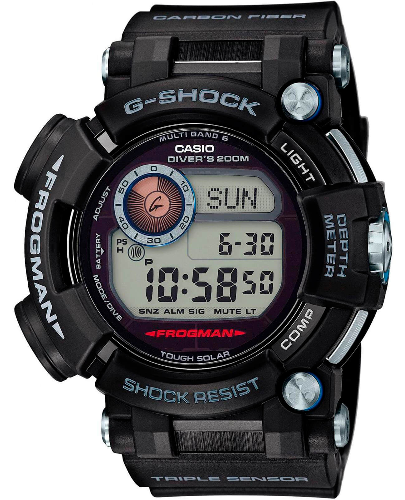 Новика часов Frogman для профессиональных дайверов и спасателей, выполняющих сложнейшие подводные задачи. Оснащены глубиномером, термометром и компасом.