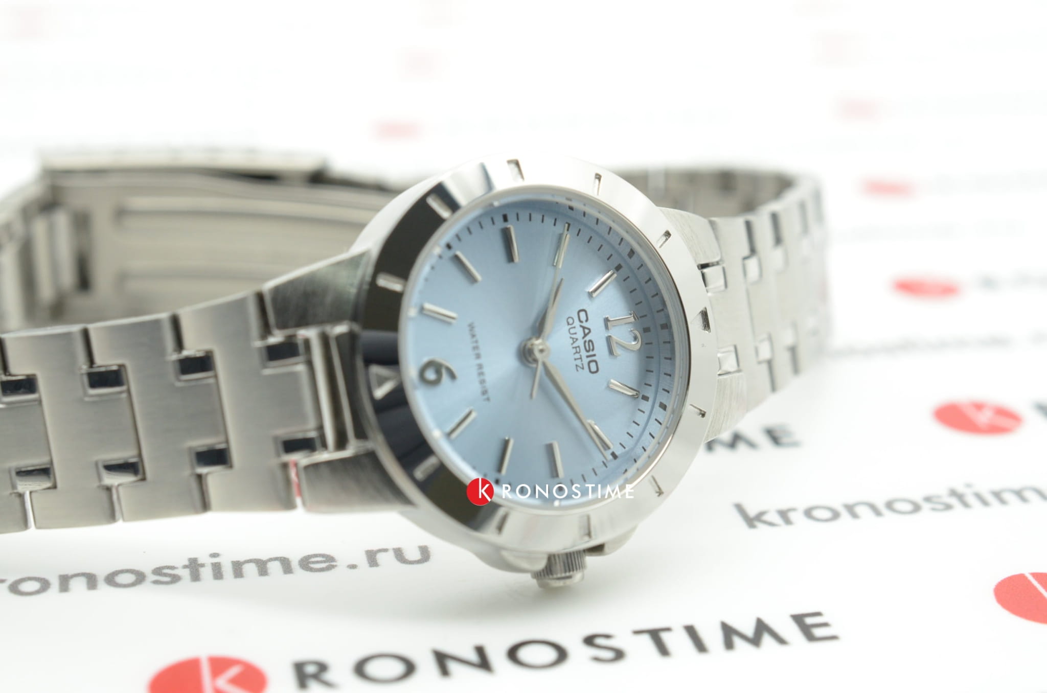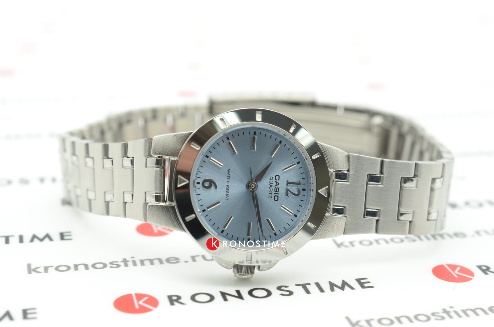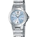 Данная модель непременно завоюет благосклонность своей практичностью в носке и стильным дизайном. Круглый циферблат часов выдержан в светло-голубом цвете и мягко отражает падающий свет. Оригинальный дизайн временных отметок сочетает в себе арабские цифры и штрихи. Корпус из гипоаллергенной латуни обрамляет защитное, минеральное стекло. Серебристый, удобный браслет выполнен из нержавеющей стали. Данная модель часов от японской марки Casio станет элегантным и незаменимым аксессуаром для своей обладательницы.