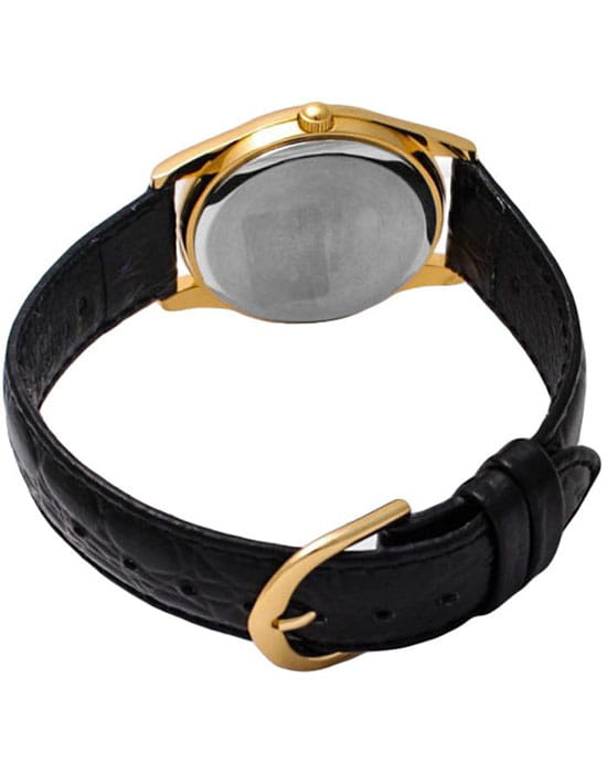 Аксессуар классического характера и со стильным дизайном придется по вкусу ценителям качества и комфорта. В шикарном сочетании черного и золотых цветов, часы прибавят привлекательности обладателю аксессуара. Аккуратный корпус выполнен из латуни. Черный ремень из натуральной кожи сочетает в себе комфорт и долговечность. На циферблате традиционной формы расположены стильные временные отметки в виде штрихов. Минеральное стекло надежно защищает часы от царапин. Кварцевый механизм.