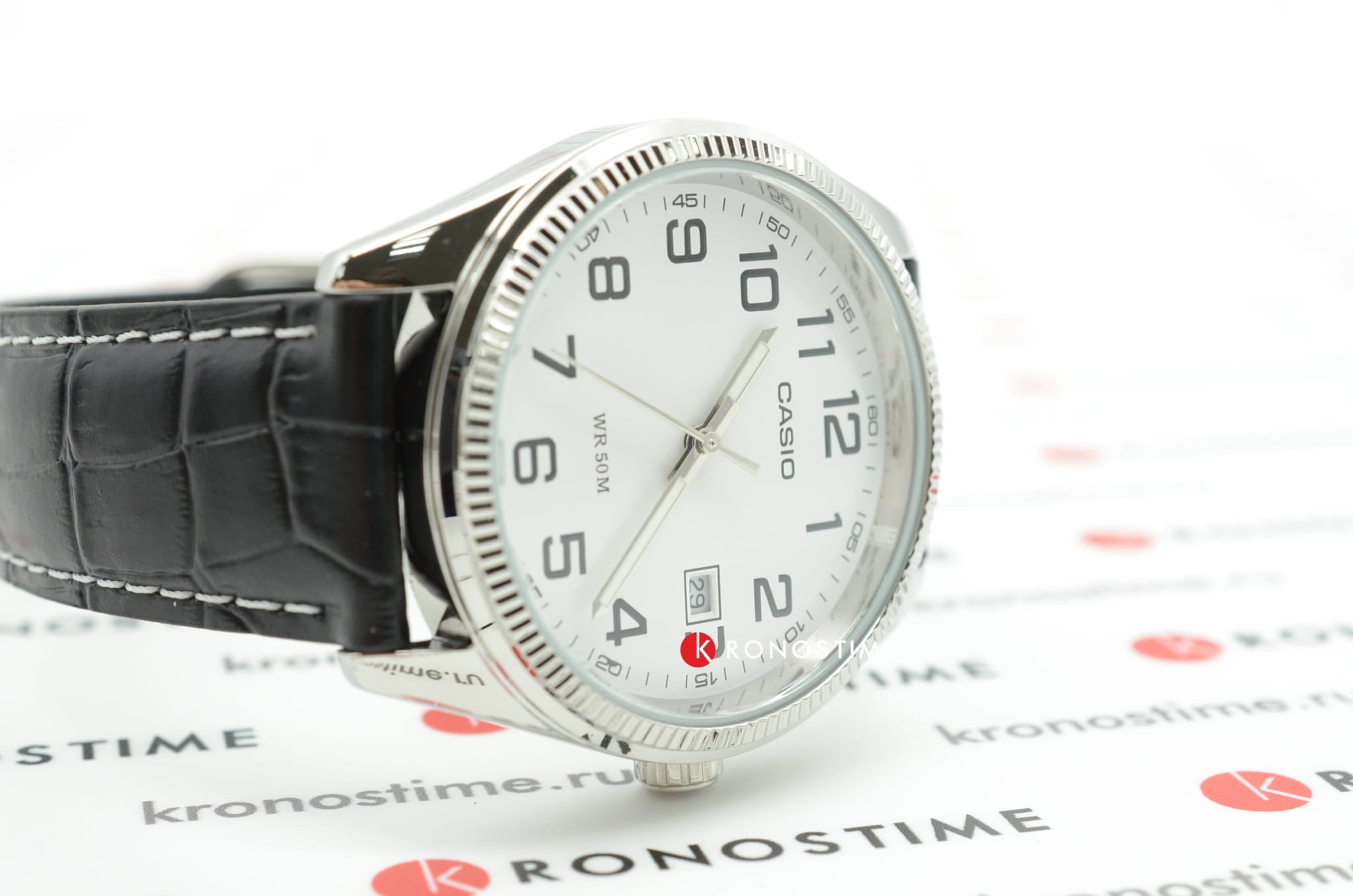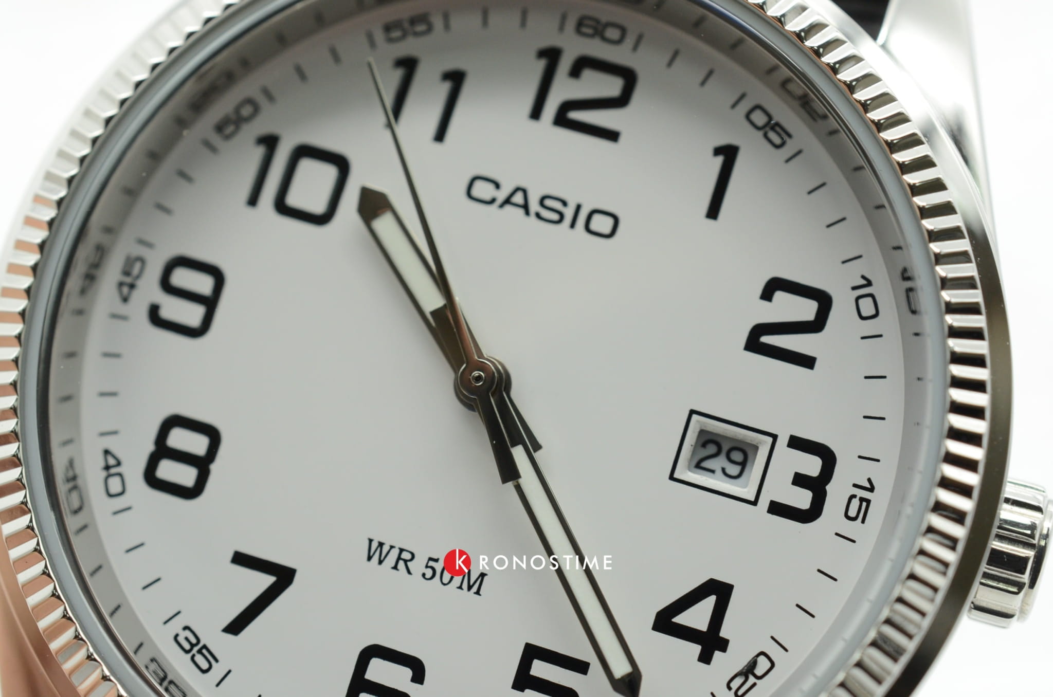 Элегантные часы от Casio выдержаны в повседневном стиле. Круглый, аккуратный корпус сделан из гипоаллергенной латуни. Мягкий браслет из натуральной кожи будет смотреться на запястье дорого и со вкусом. На белом циферблате расположены отчетливые арабские цифры и миниатюрный календарь. Минеральное стекло защищает изделие от царапин. Фактурный безельБезельВнешний ободок, закрепляющий стекло. В спортивных часах так называется поворотное кольцо с делениями на циферблате, выполняет роль таймера – замеряет отрезки времени на шкале. Неподвижный безель – элемент декора. Однонаправленно вращающийся безель на дайверских часах позволяет фиксировать моменты погружения и выныривания на поверхность. добавляет в аксессуар привлекательности. Подсветка NeobriteПодсветка NeobriteИспользование светонакопительных составов на основе сульфида цинка или алюмината стронция, яркий свет можно наблюдать на протяжении 6-10 часов после «зарядки» часов около источника света. позволяет с комфортом определять время в темное время суток. Кварцевый тип механизма. Батарейка служит 3 года. Водонепроницаемость составляет 5 Бар.
