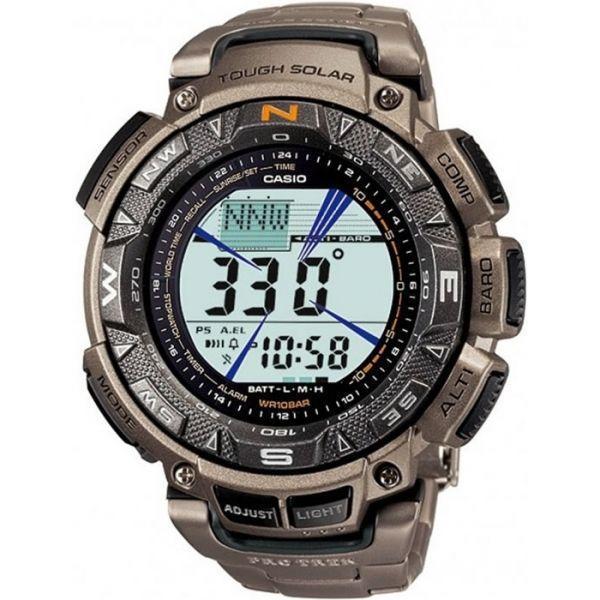 Функциональная модель в серебристой расцветке обладает расширенными возможностями. Каждое усложнение направляет усилия на то, чтобы ваше путешествие прошло легко и насыщенно. Среди функций компас, барометр, датчик температуры, мировое времяМировое время Полезное часовое усложнение, отображающее время в основных городах и известных областях по всему миру, оно связано с часовыми поясами, удобно для путешественников и бизнесменов. , отображение восхода и заката солнца, высотомер, таймер. Японский кварцевый механизм. Технология . Индикатор состояния заряда батареи. Электролюминесцентная подсветкаЭлектролюминесцентная подсветкаЭлектролюминесцентная панель устанавливается под ЖК-экраном часов, при нажатии кнопки электричество преобразуется в свет за счёт подачи напряжения на атомы фосфора, такой тип подсветки позволяет освещать весь циферблат. циферблата. Ударопрочный корпусУдаропрочный корпусМеханизм заключён в корпус, выполненный из современных материалов, устойчивых к ударам, механическим повреждениям и падению с высоты: инновационный пластик, карбон, нержавеющая сталь, титан. из полимерного материала. Титановый браслет. Вращающийся безельБезельВнешний ободок, закрепляющий стекло. В спортивных часах так называется поворотное кольцо с делениями на циферблате, выполняет роль таймера – замеряет отрезки времени на шкале. Неподвижный безель – элемент декора. Однонаправленно вращающийся безель на дайверских часах позволяет фиксировать моменты погружения и выныривания на поверхность.. Минеральное стекло. Водостойкость до 10 бар. Устойчивость к температуре ниже -10°C. Габариты: 57,3 x 50,9 x 15,3 мм.