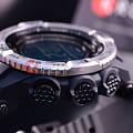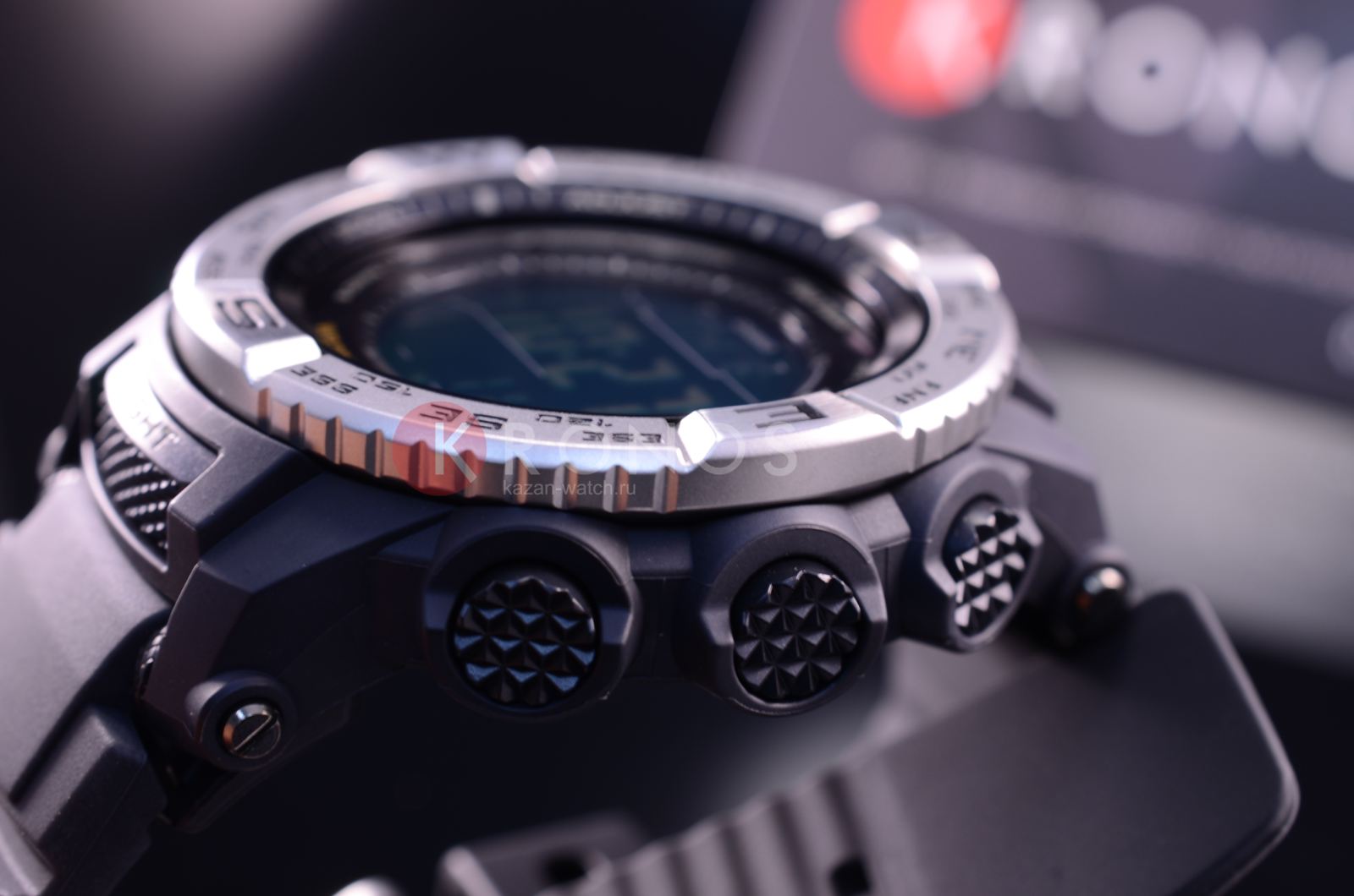 Многофункциональные японские мужские наручные часы. Круглый корпус часов выполнен из темного пластика, безель из стали, резиновый браслет. Инверсионный, жидкокристаллический дисплей. Часы оснащены такими дополнительными функциями как секундомер, таймер обратного отсчета, высотометр, термометр, компас, альтиметр. Минеральное стекло, устойчивое к появлению царапин. Магнитоустойчивая, ударопрочная модель. Источником энергии служат солнечные батареи. Синхронизация времени по радиосигналу.