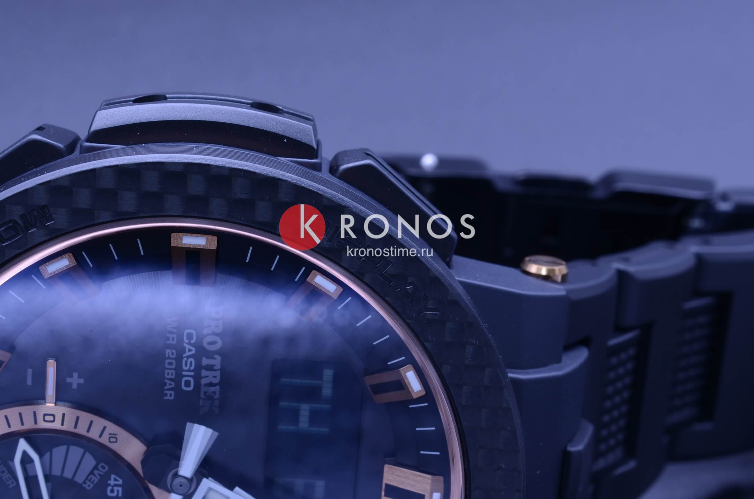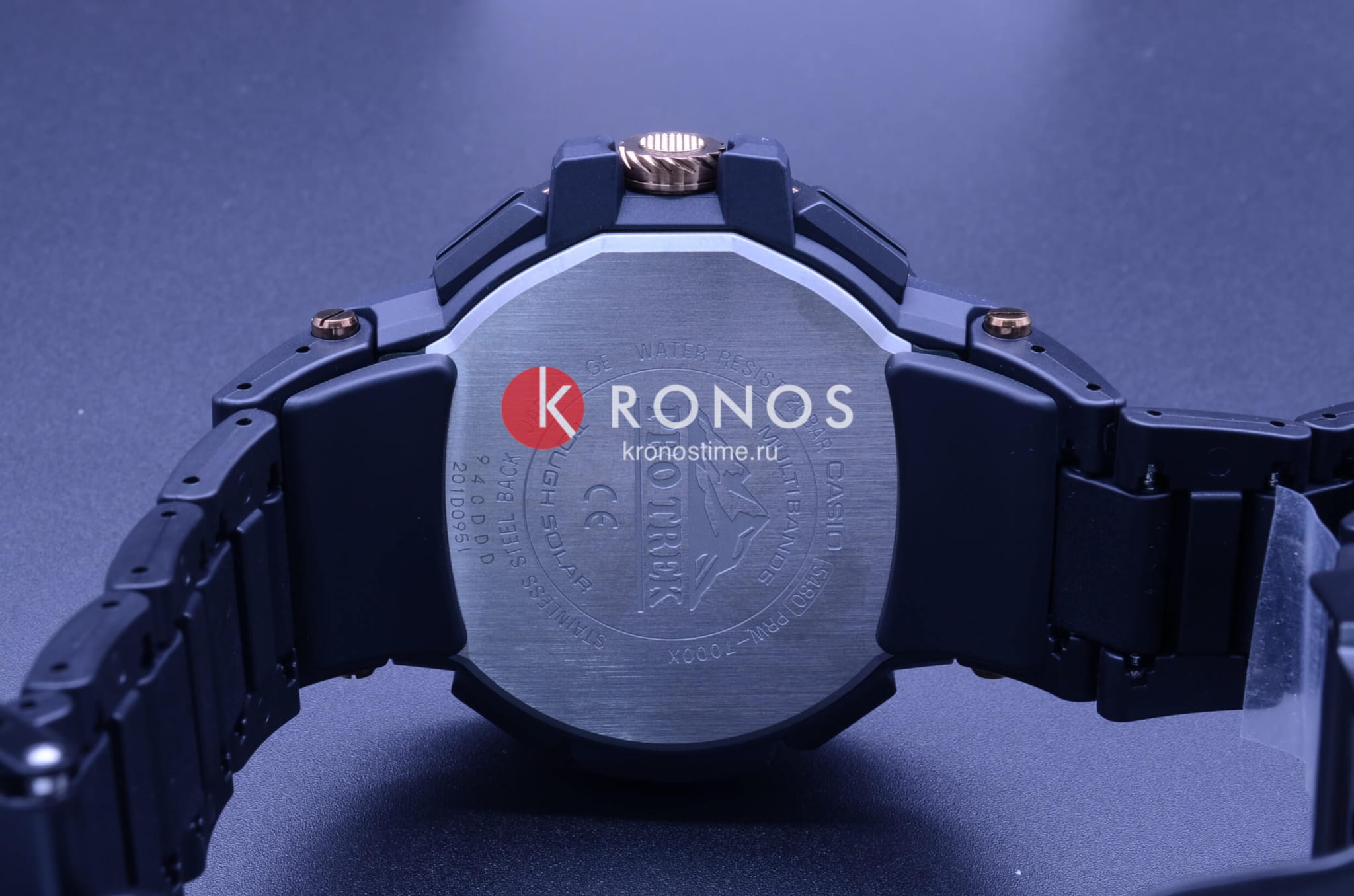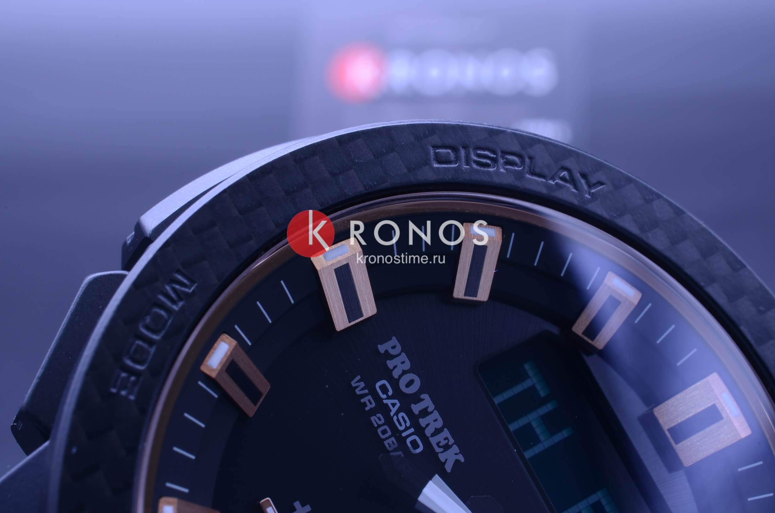 Перед вами лимитированная модель PRO TREK из серии PRW-7000 в черном корпусе с деталями цвета розового золота и карбоновым безелем вокруг аналого-цифрового циферблата Модель на композитном браслете визуально выглядит массивно но на деле очень легкая и это действительно фантастика, лимитированная модель выпущена ограниченным тиражом в 1300 экземпляров на весь мир, в Россию поступили несколько экземпляров